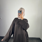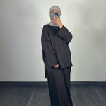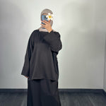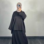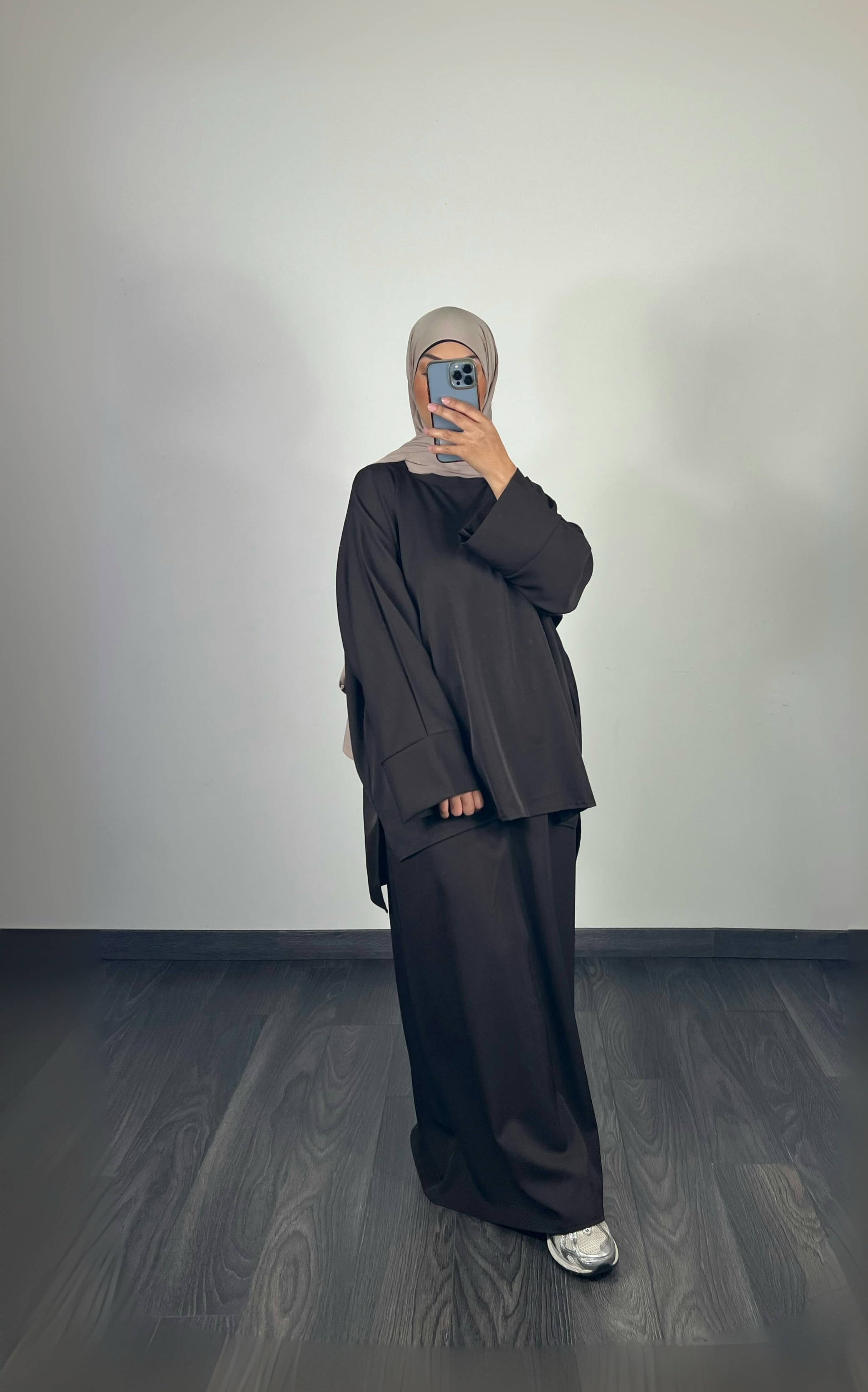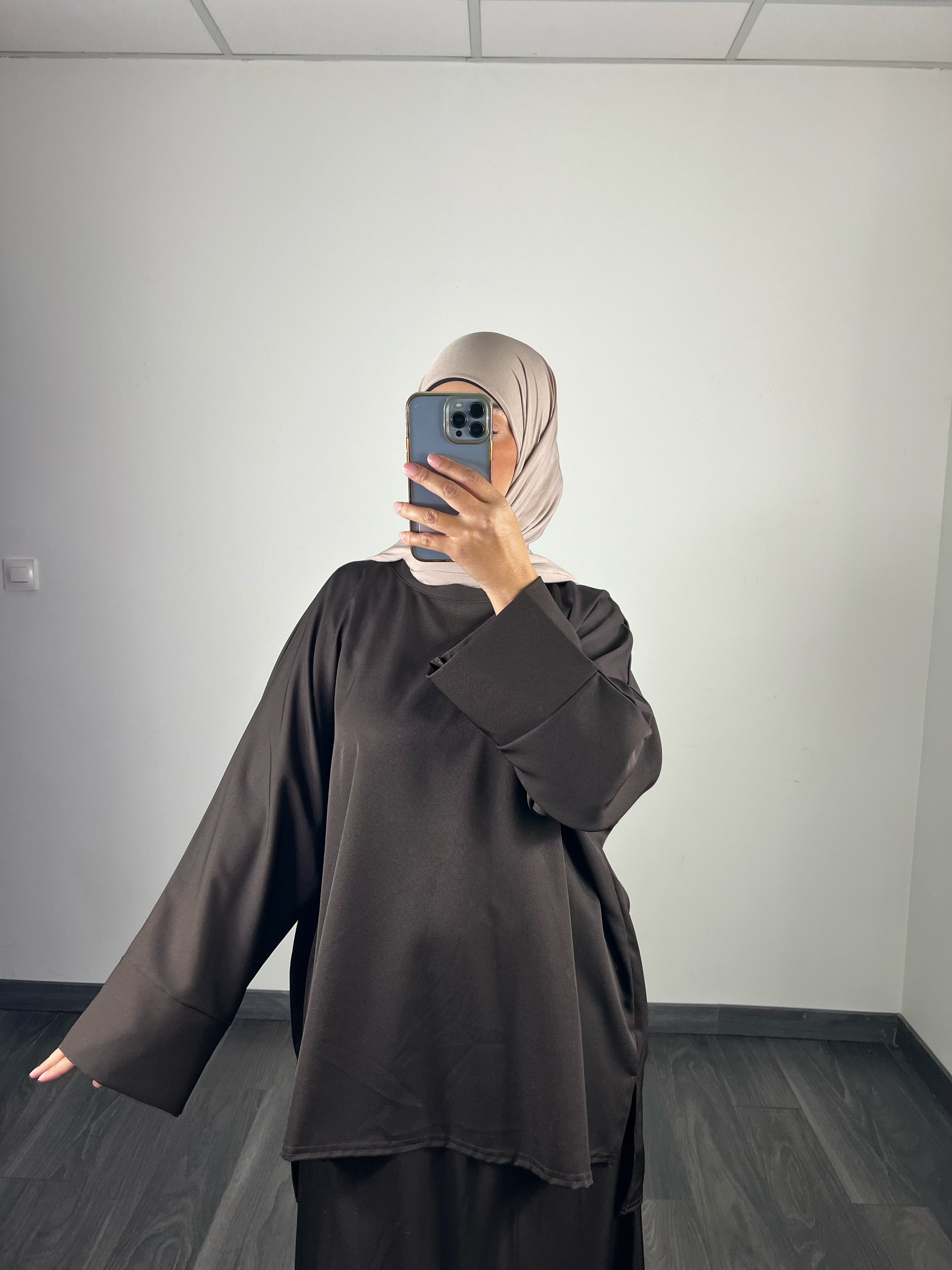 Ensemble composé d’une tunique et d’une jupe avec elastique à la taille en tissu type crèpe couleur marron
