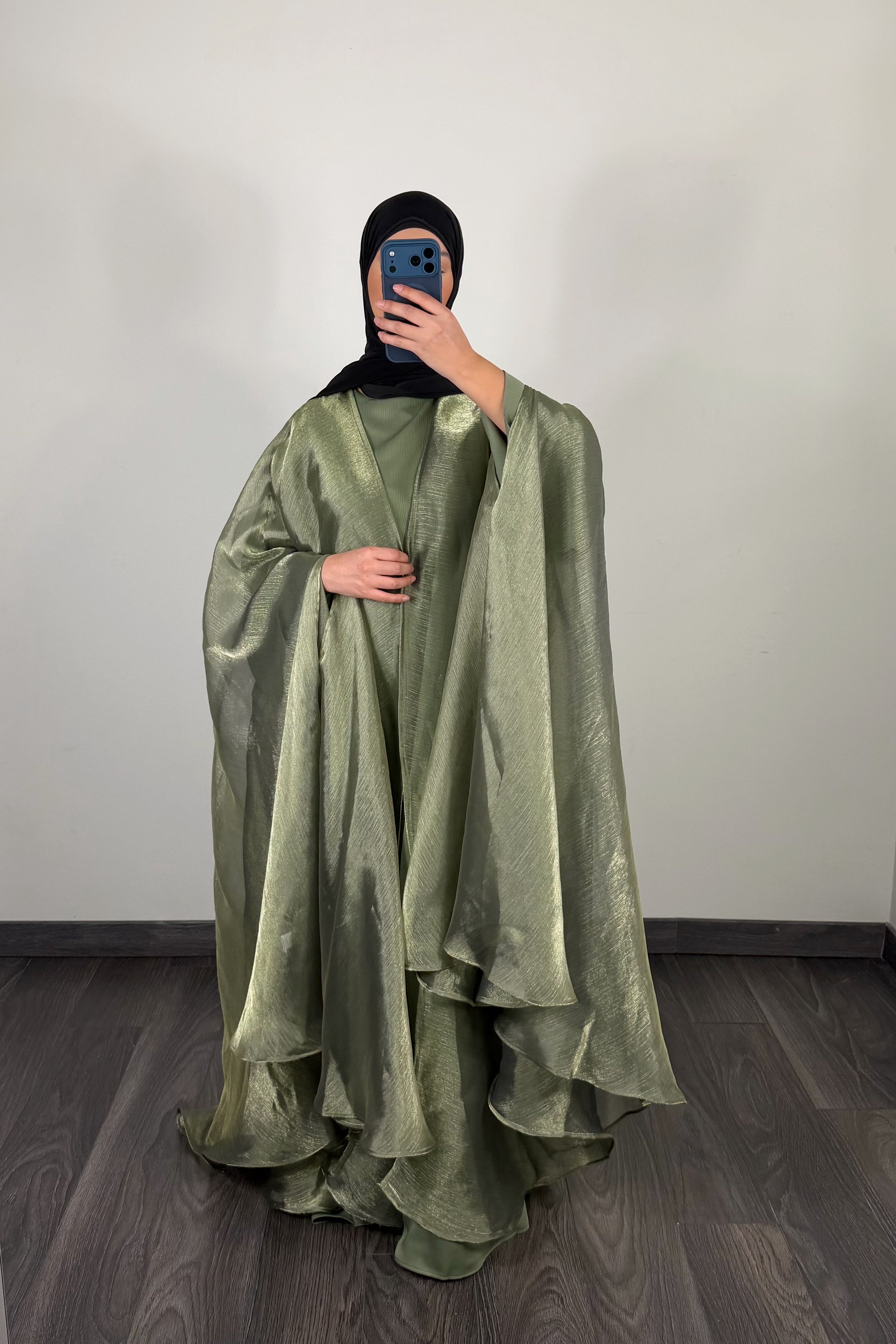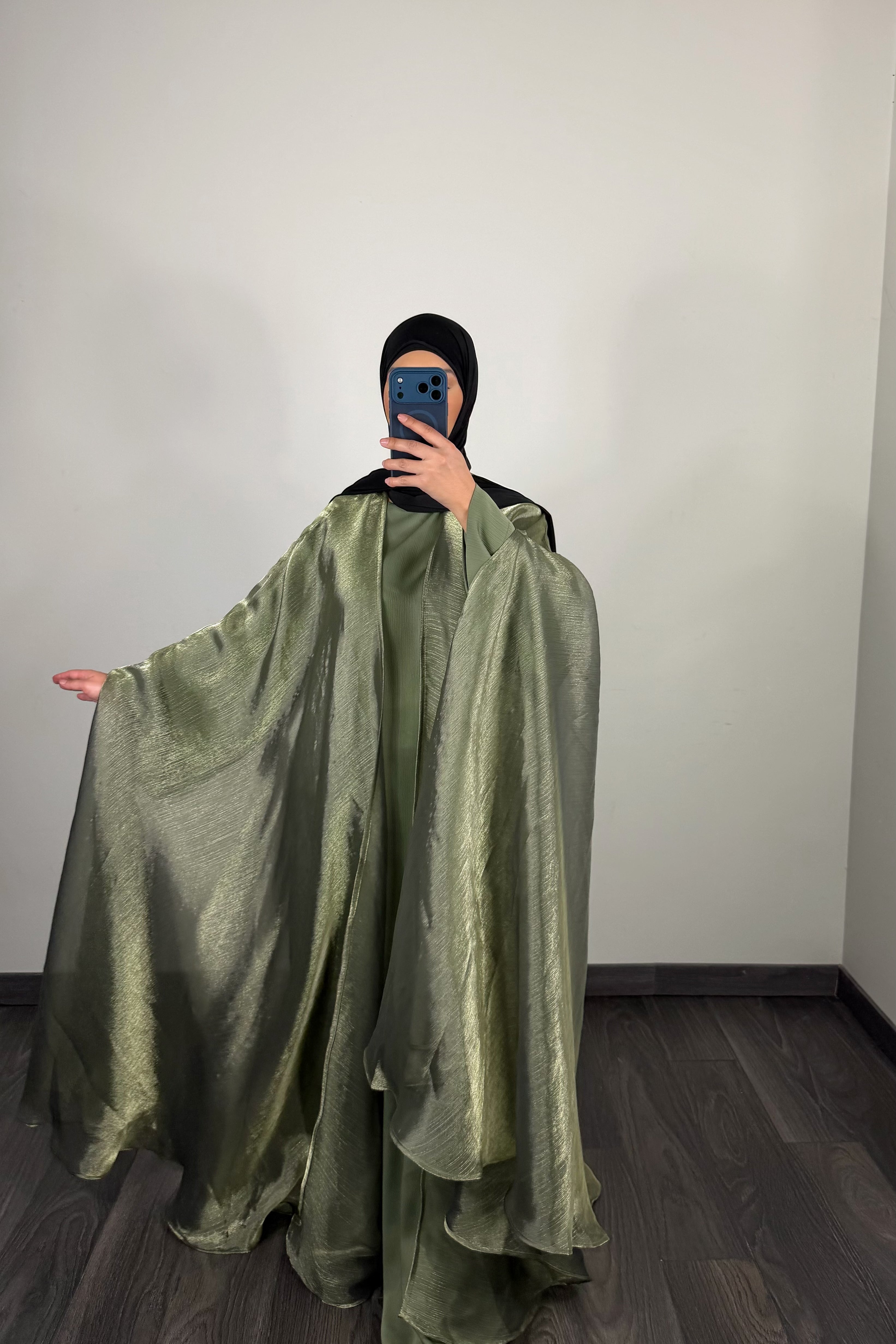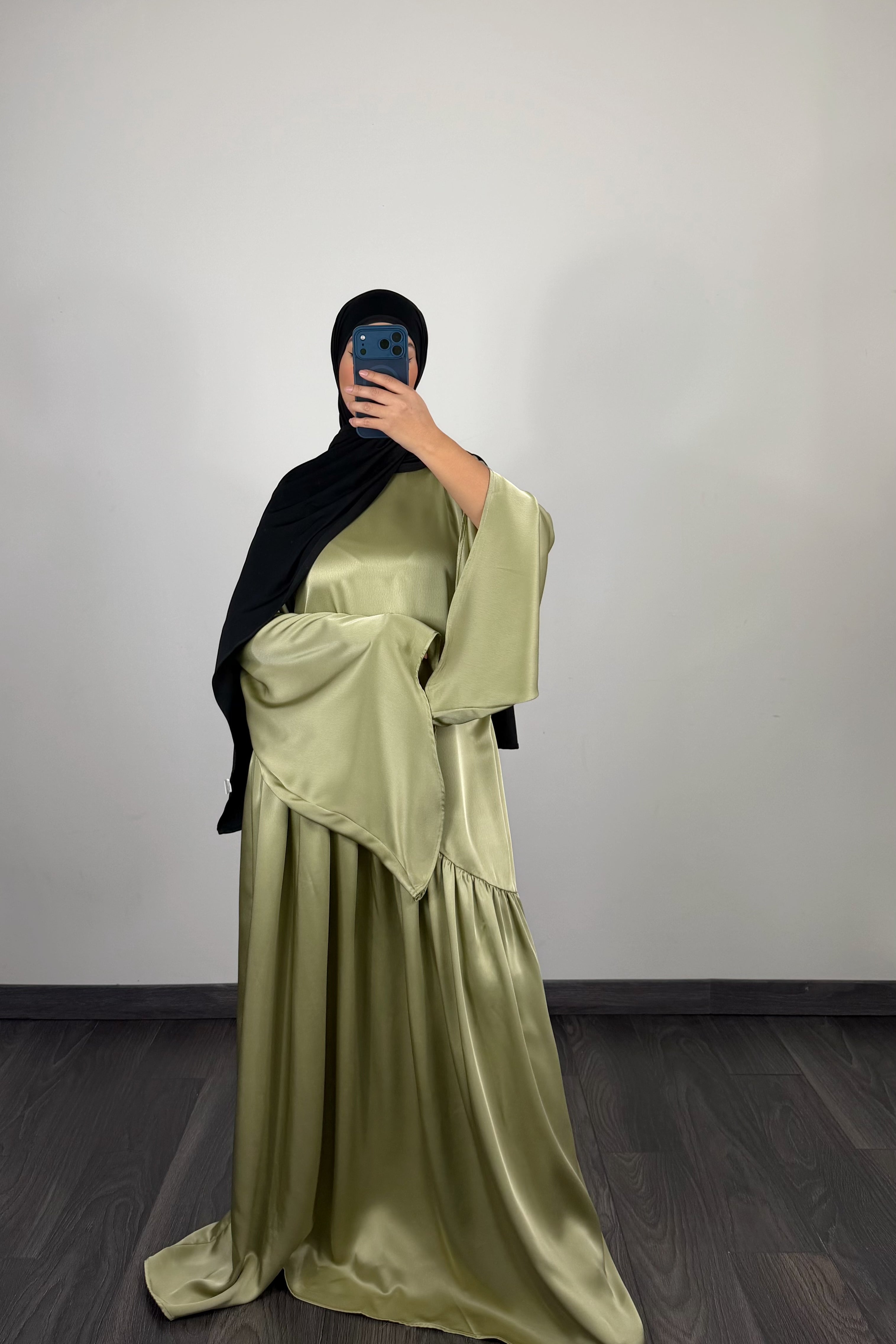 Abaya satin, vert sauge