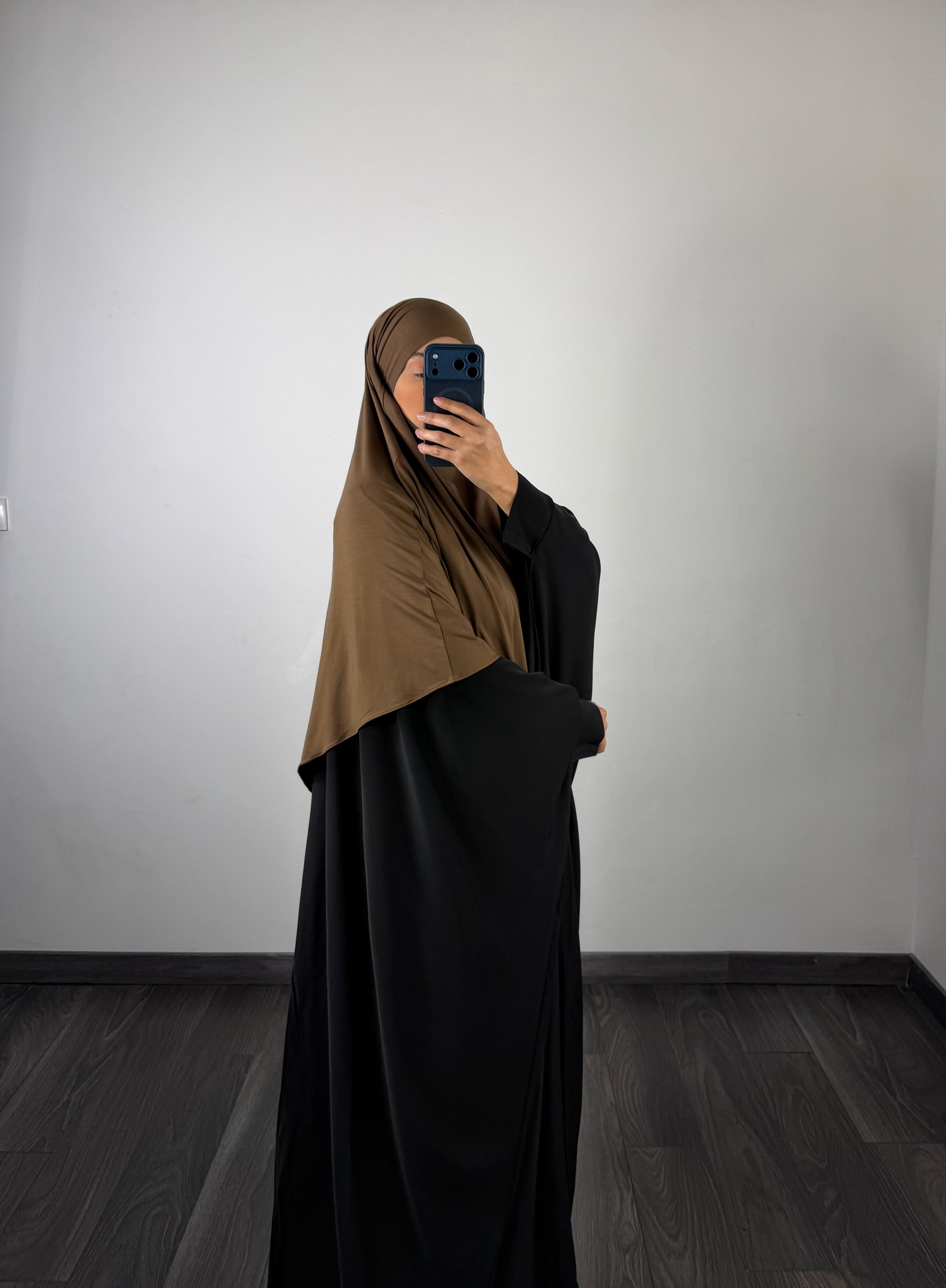 Khimar court en tissu bambou, ressemblant au jersey, très élastique et surtout léger. C’est un tissu frais et respirant pour les fortes chaleurs.