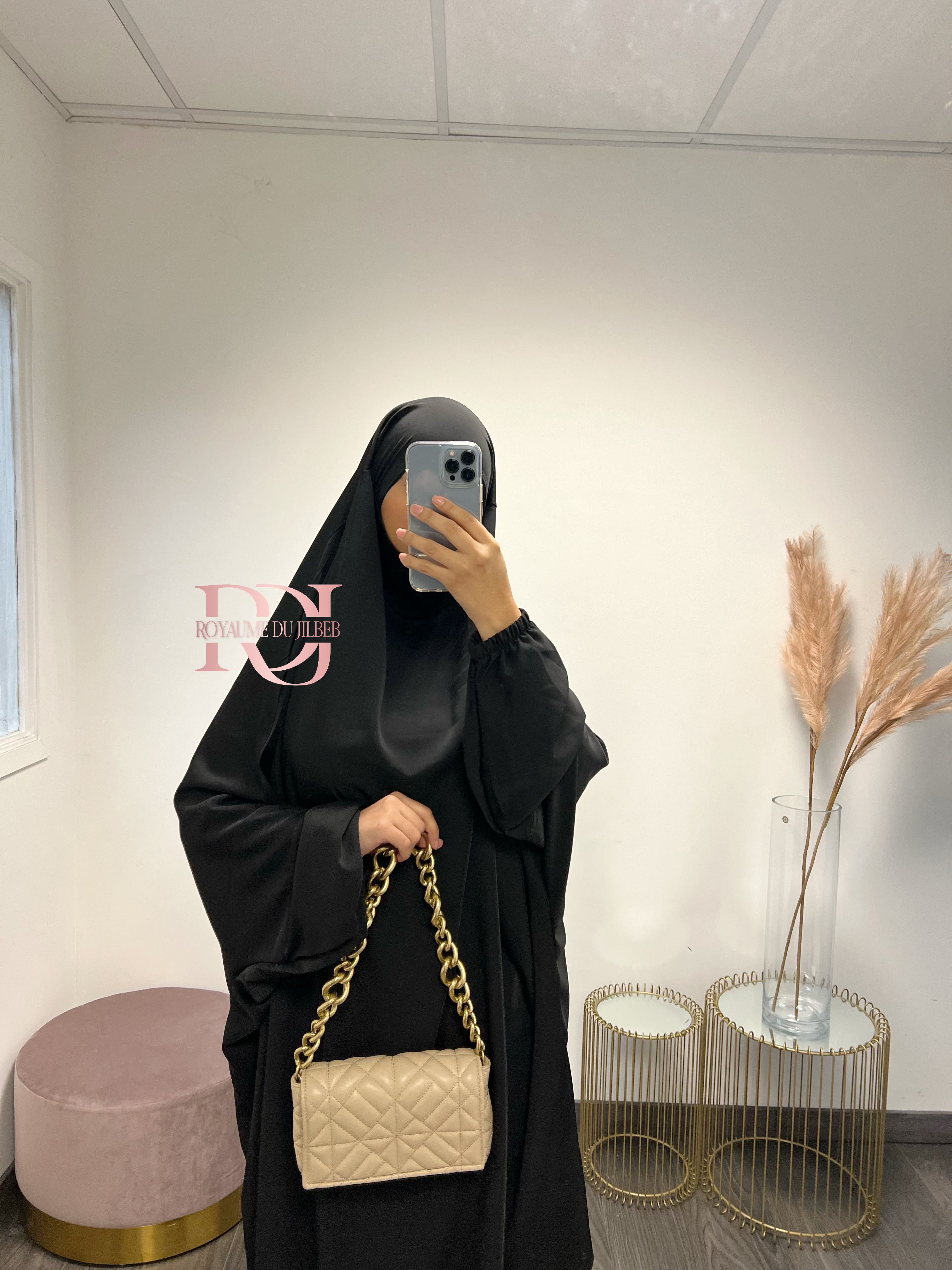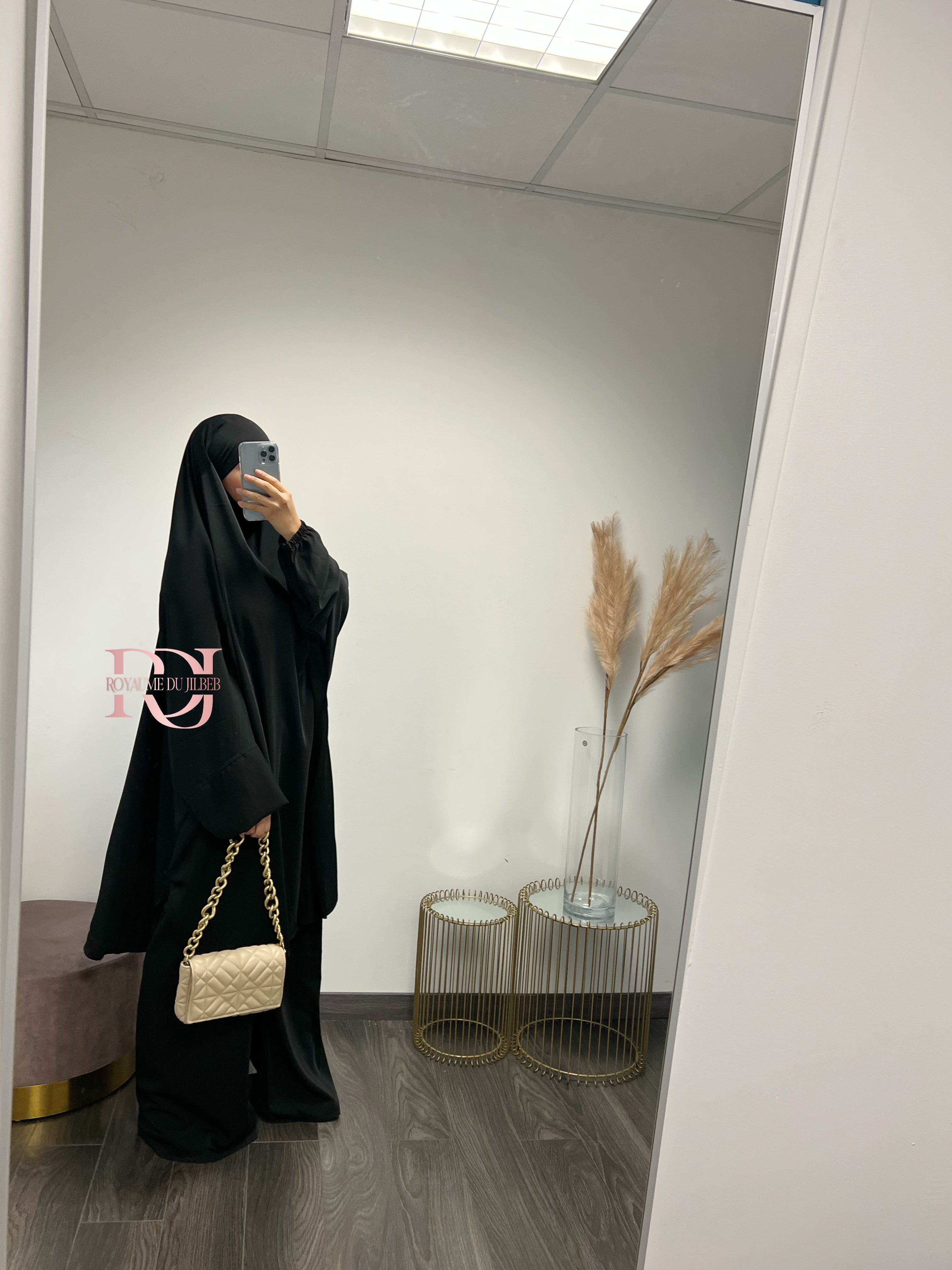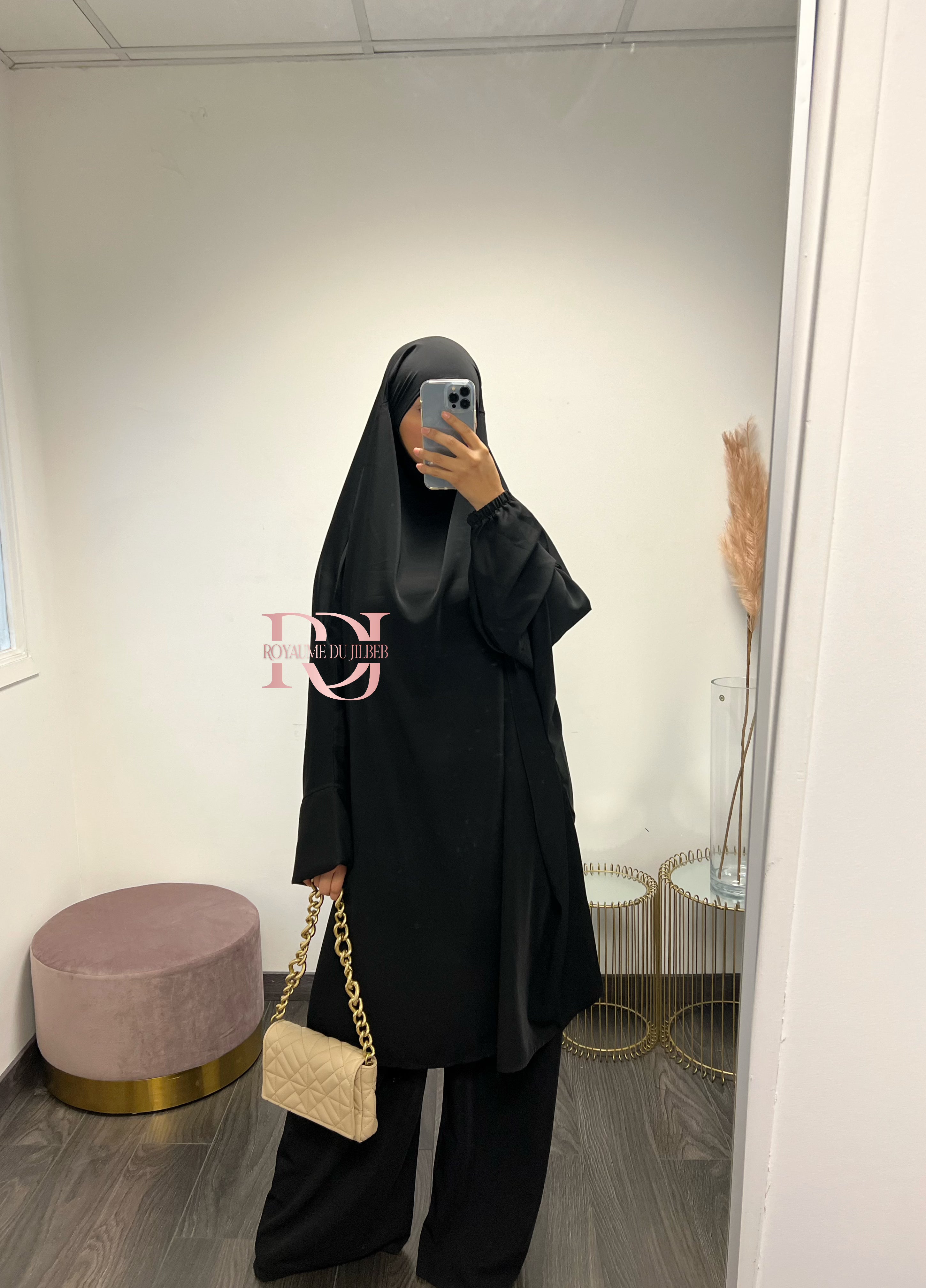Jilbeb soie de médine 2 pièces palazzo, couleur noir