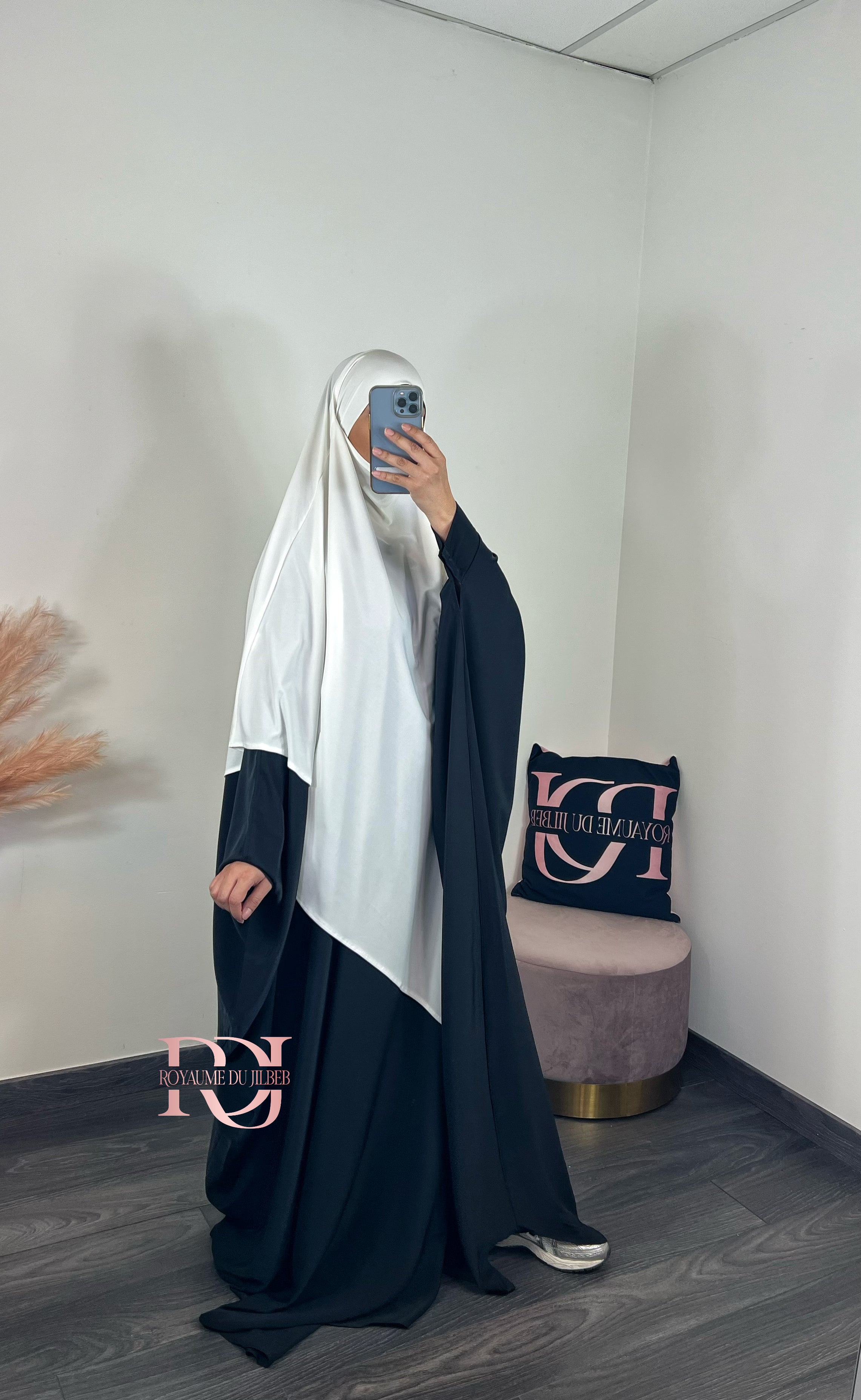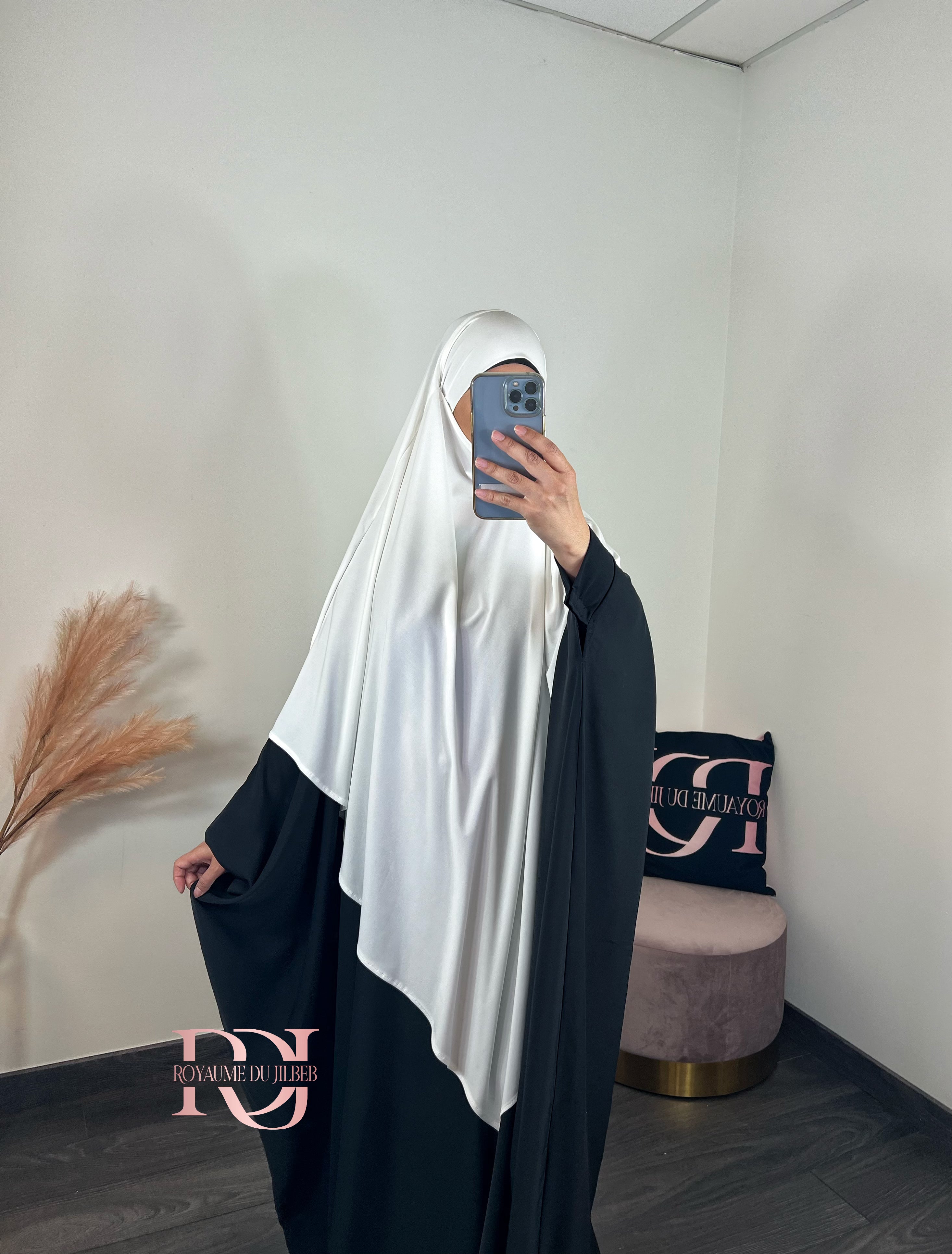 Khimar en tissu jersey premium ayant pour avantage le confort de l’élasticité du tissu ainsi que le tissu très peu froissable.