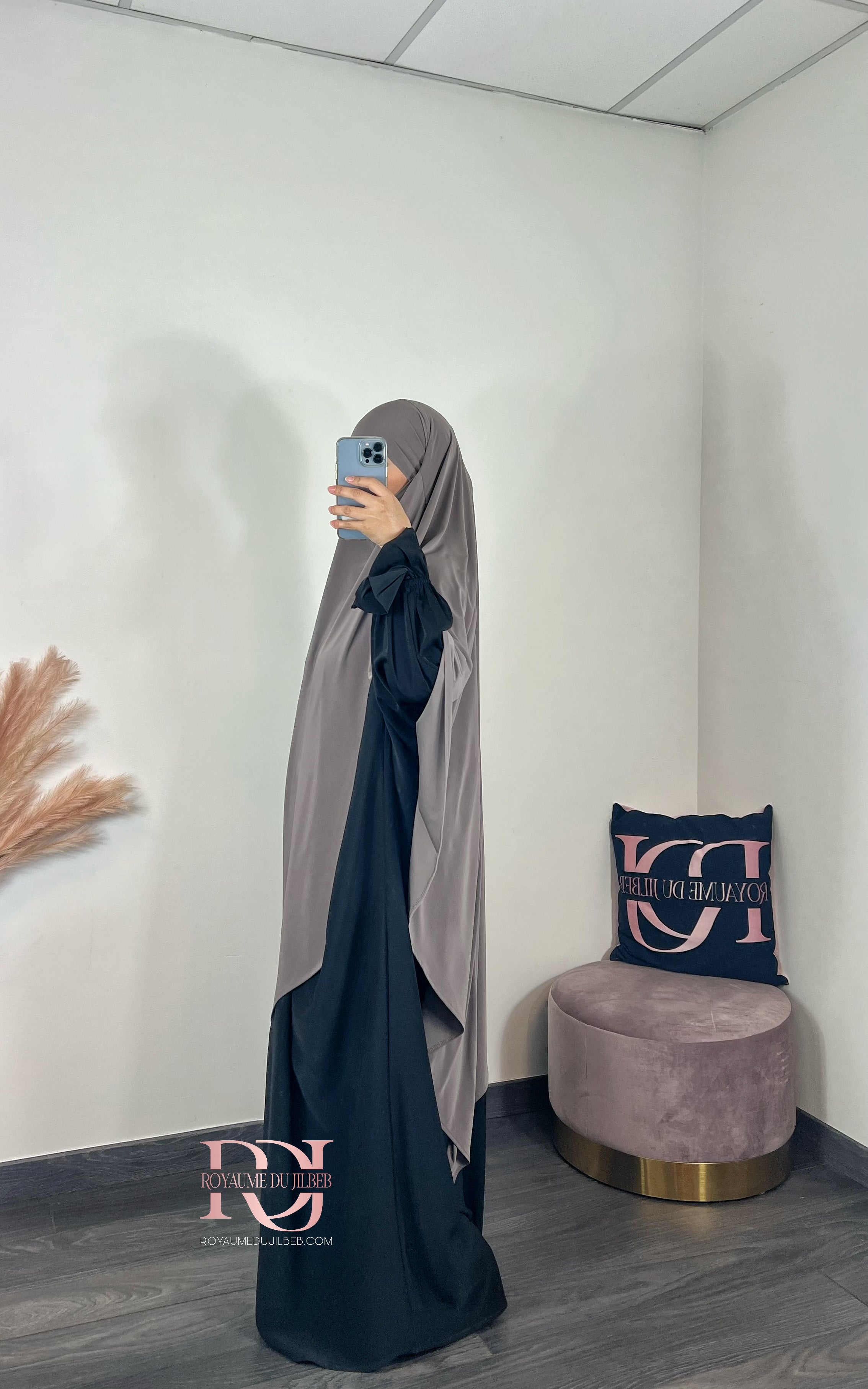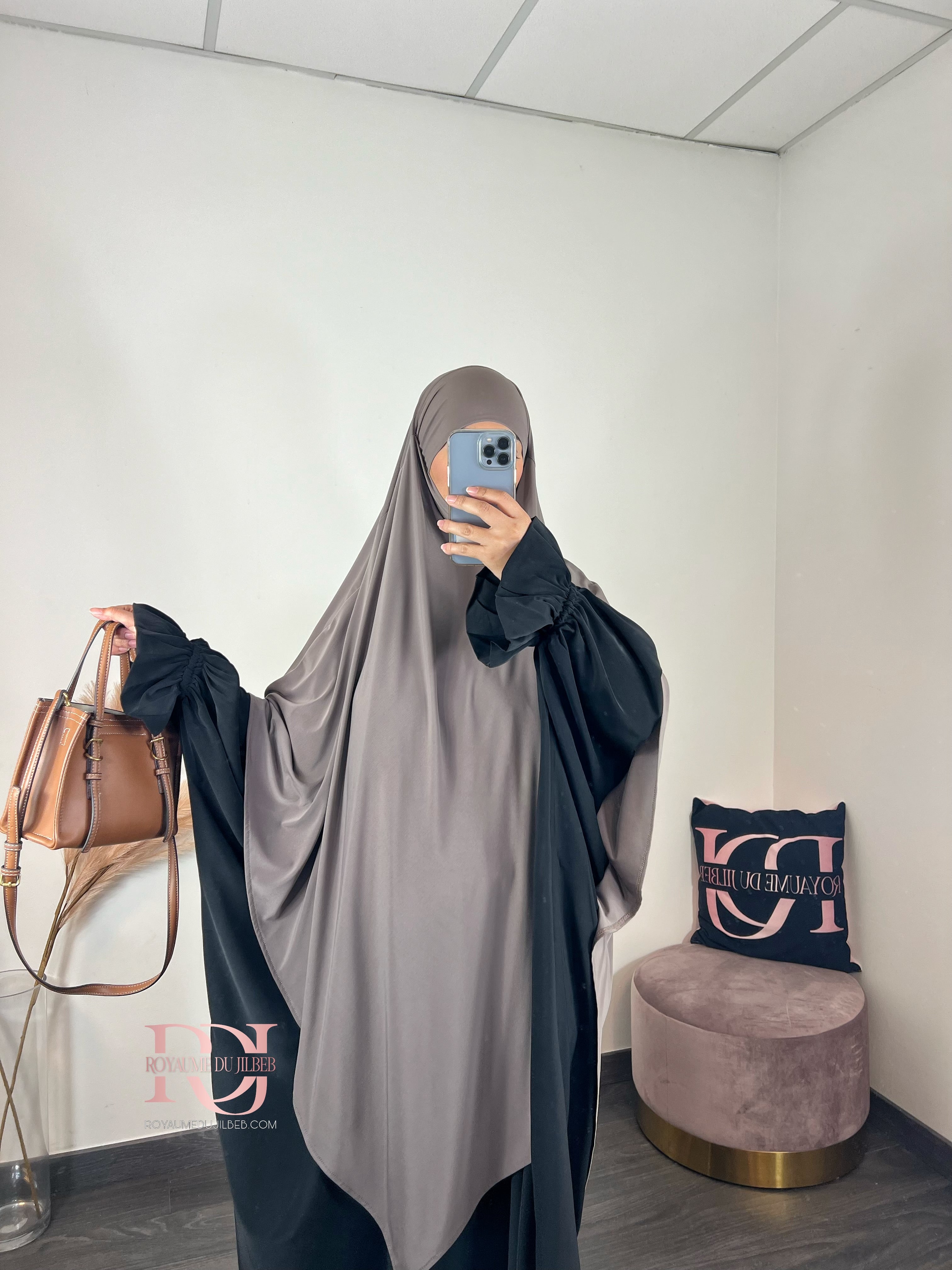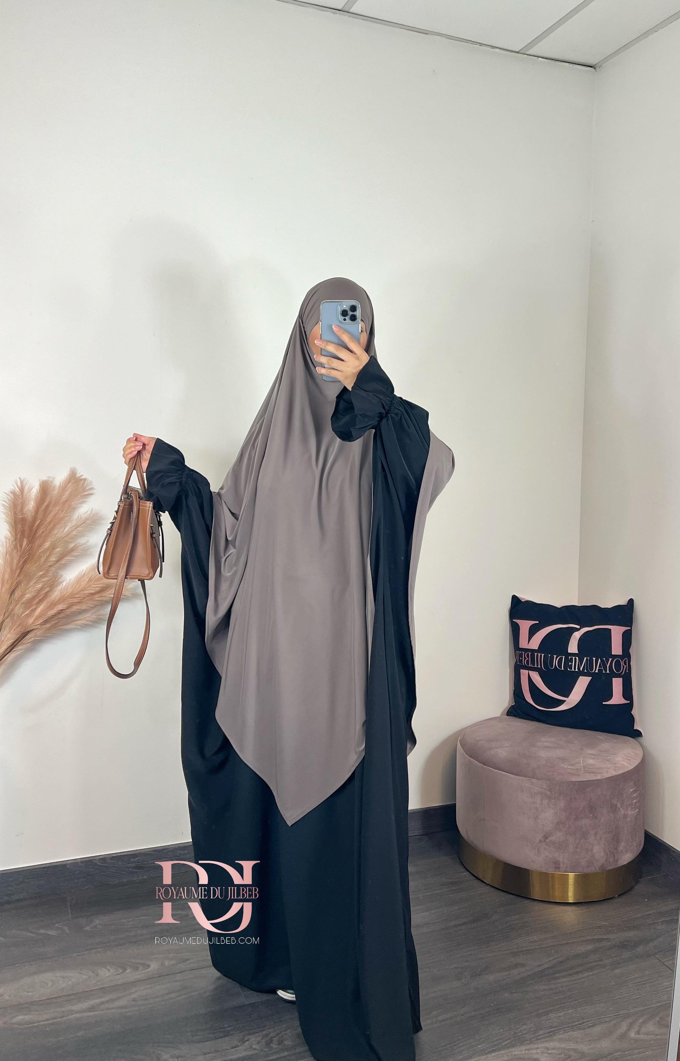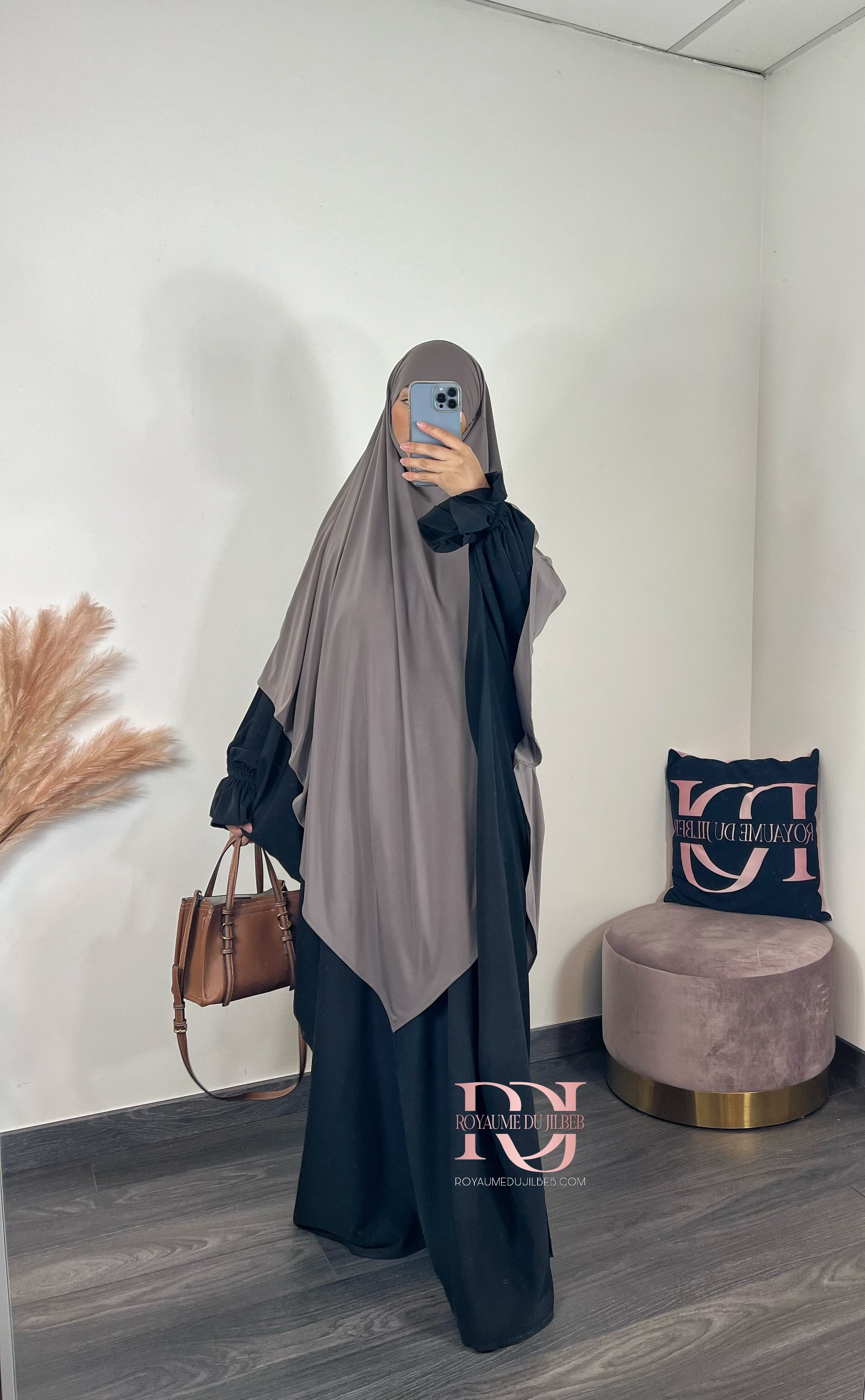 Khimar en tissu jersey premium ayant pour avantage le confort de l’élasticité du tissu ainsi que le tissu très peu froissable.