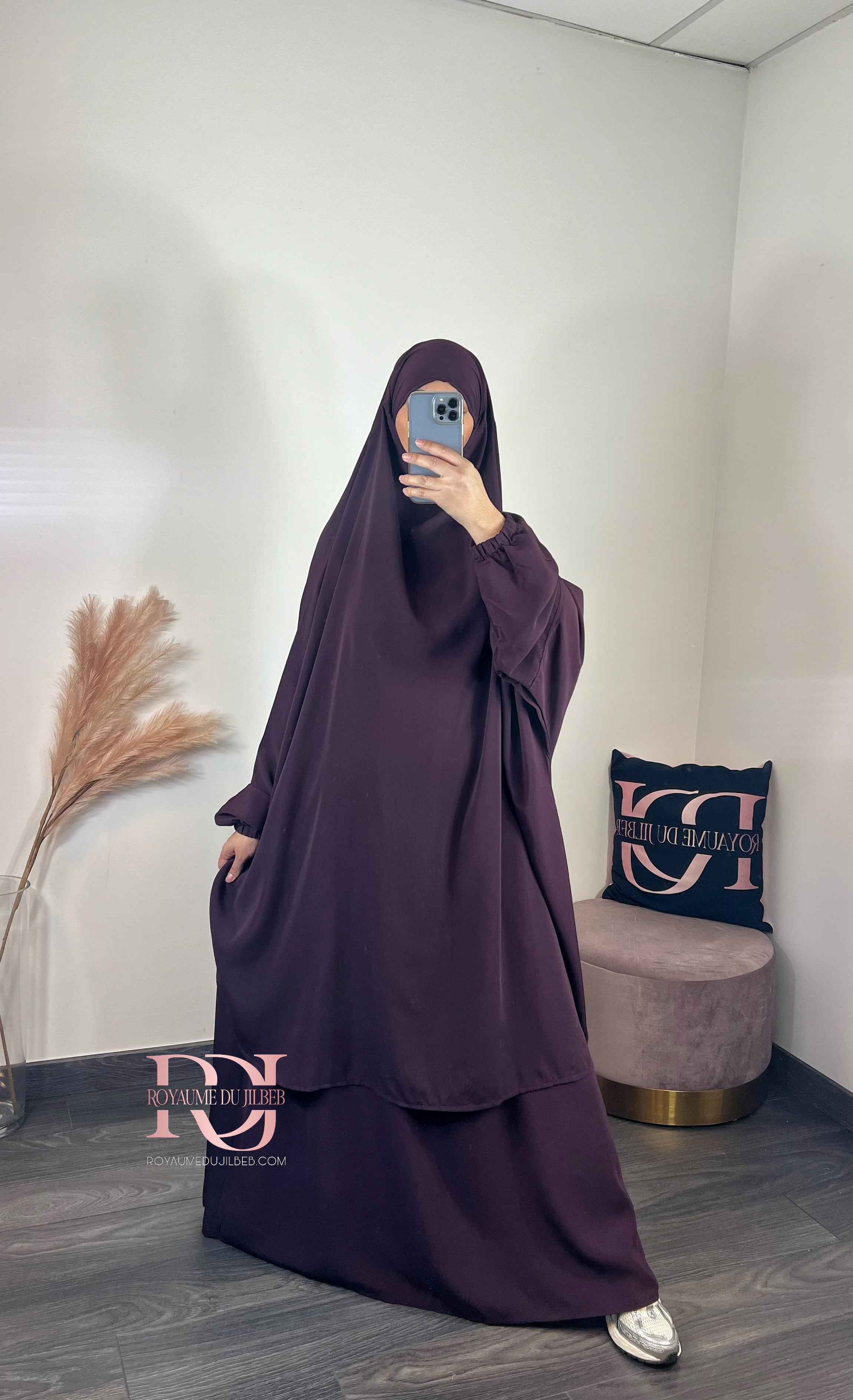 Jilbeb microfibre, 2 pièces jupe couleur prune