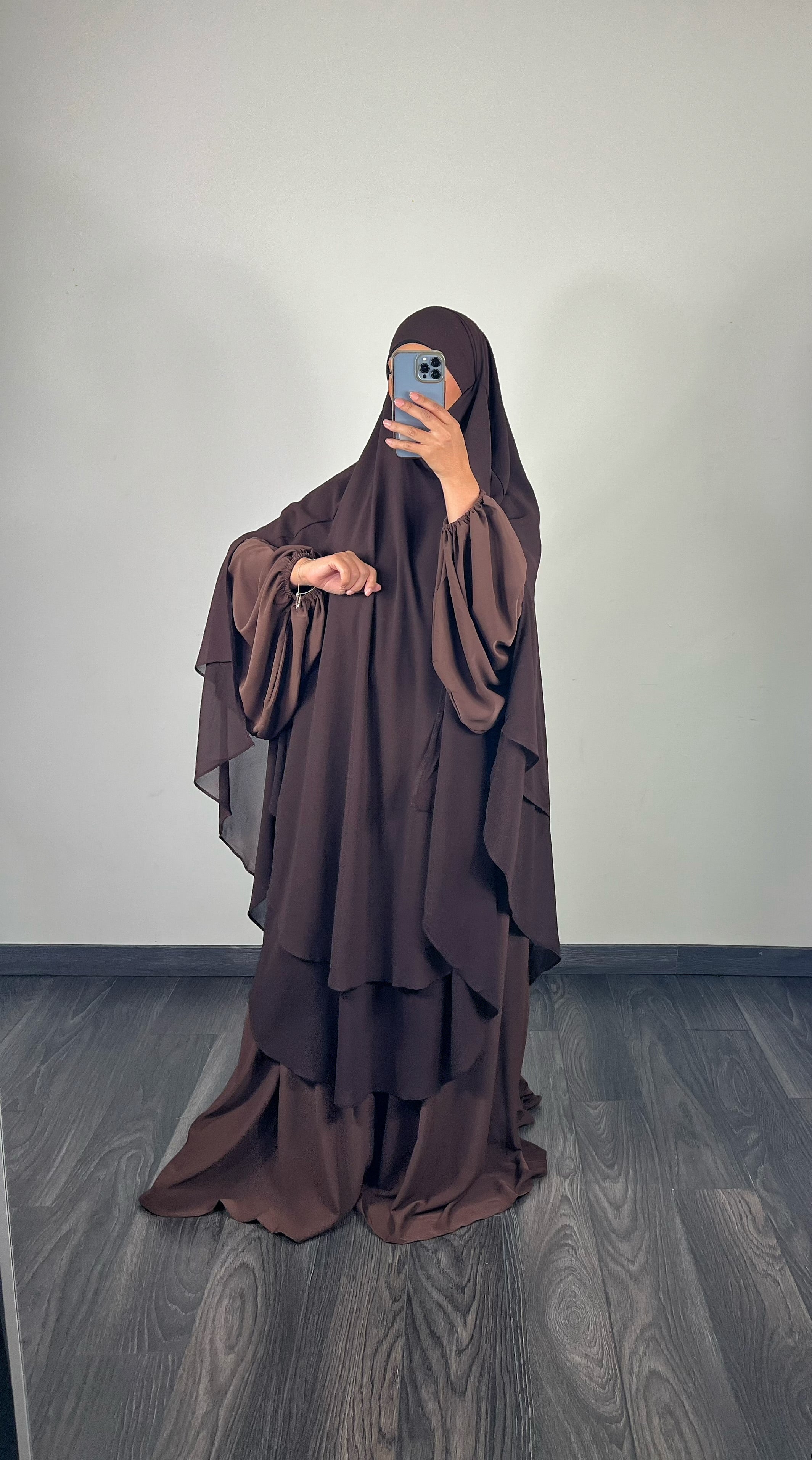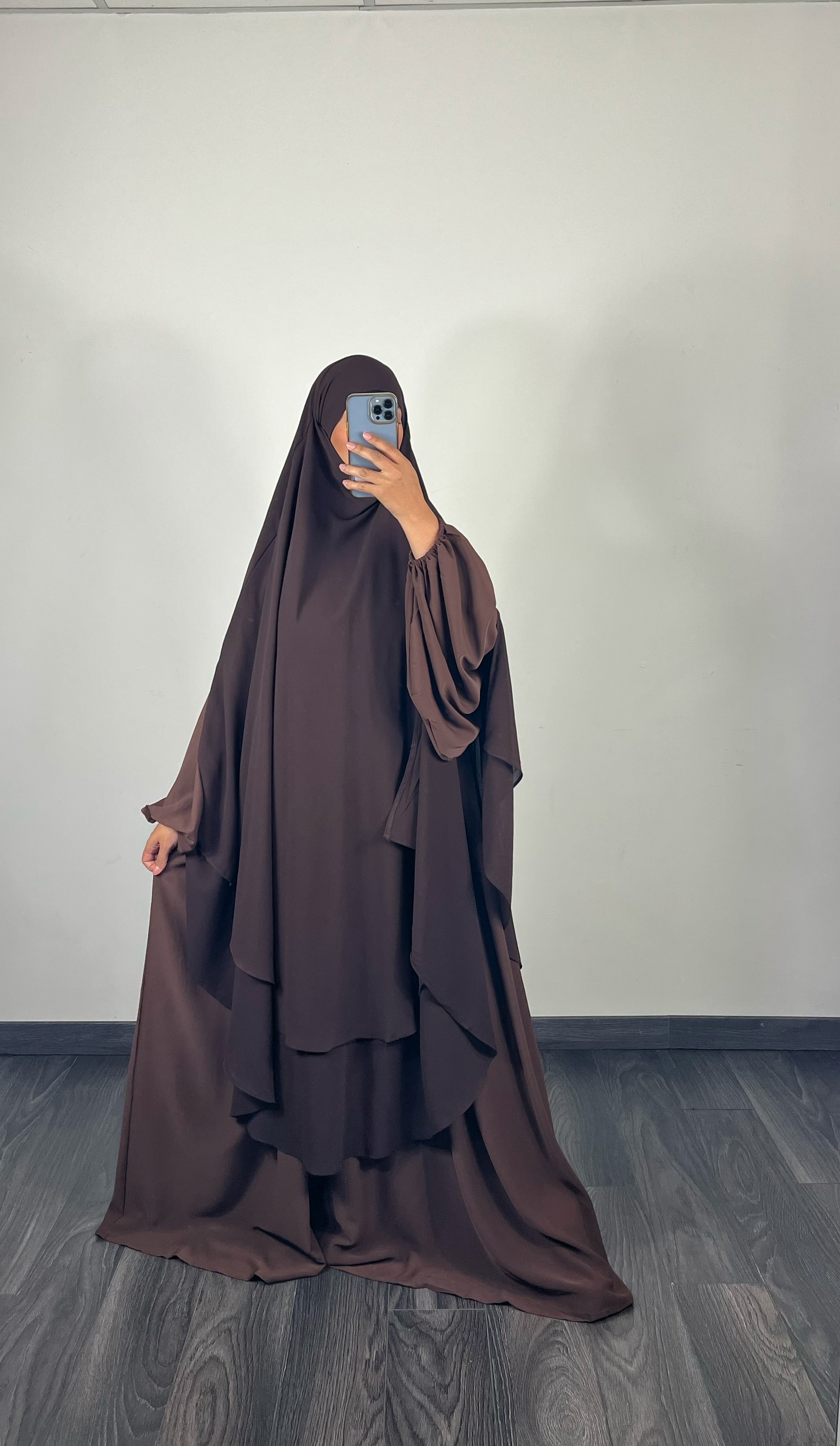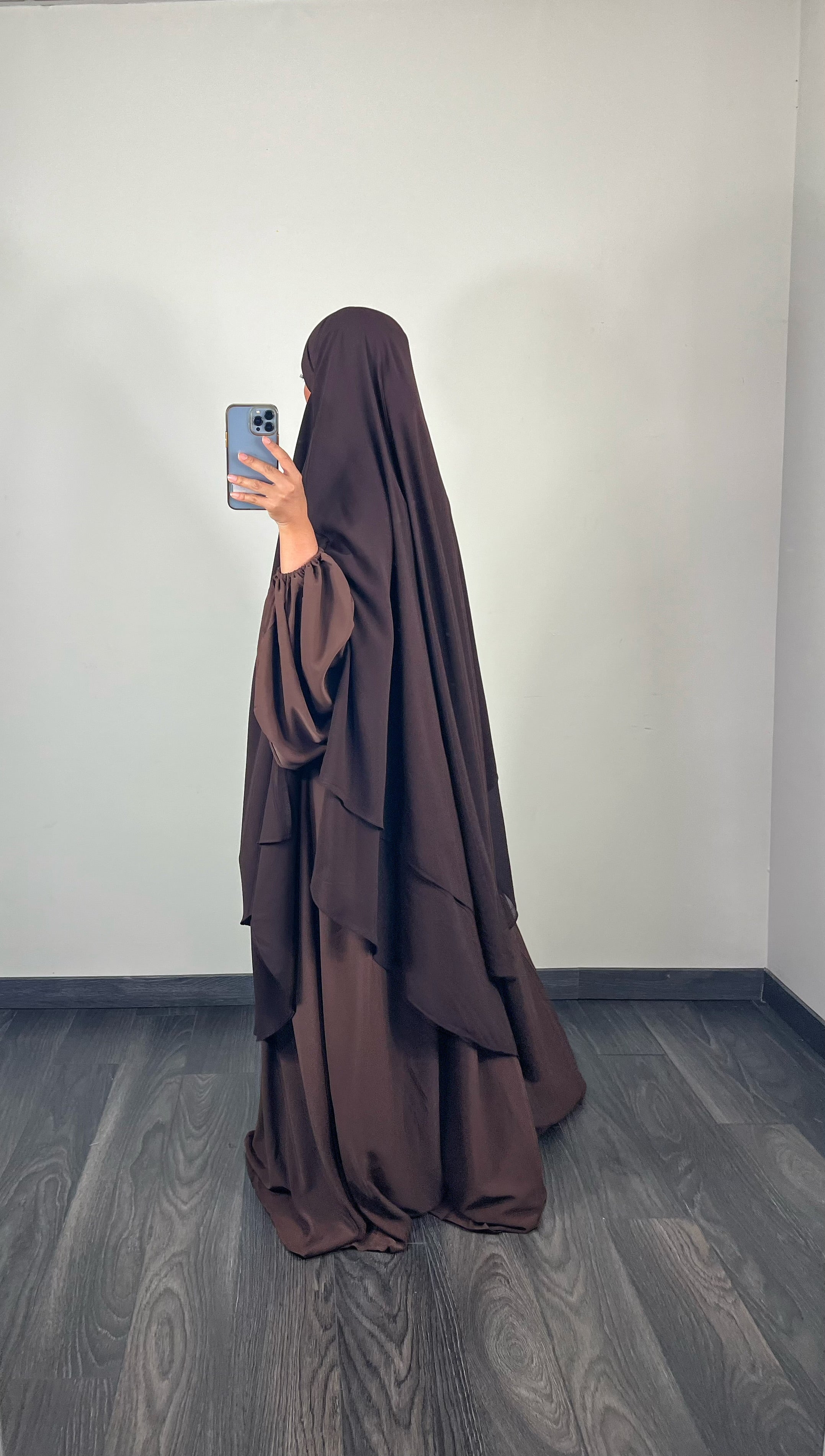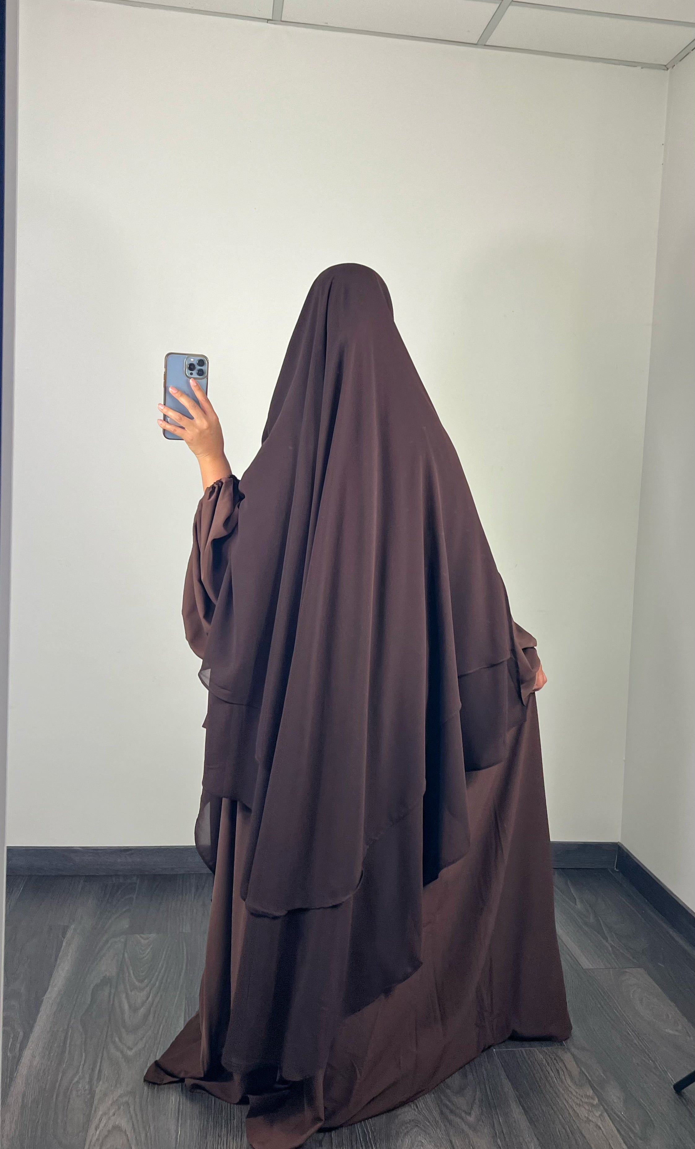 Maxi khimar en tissu mousseline avec fentes sur les côtés en 2 voiles