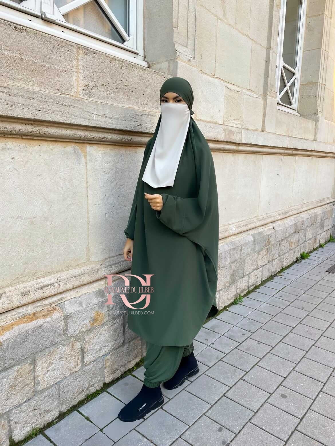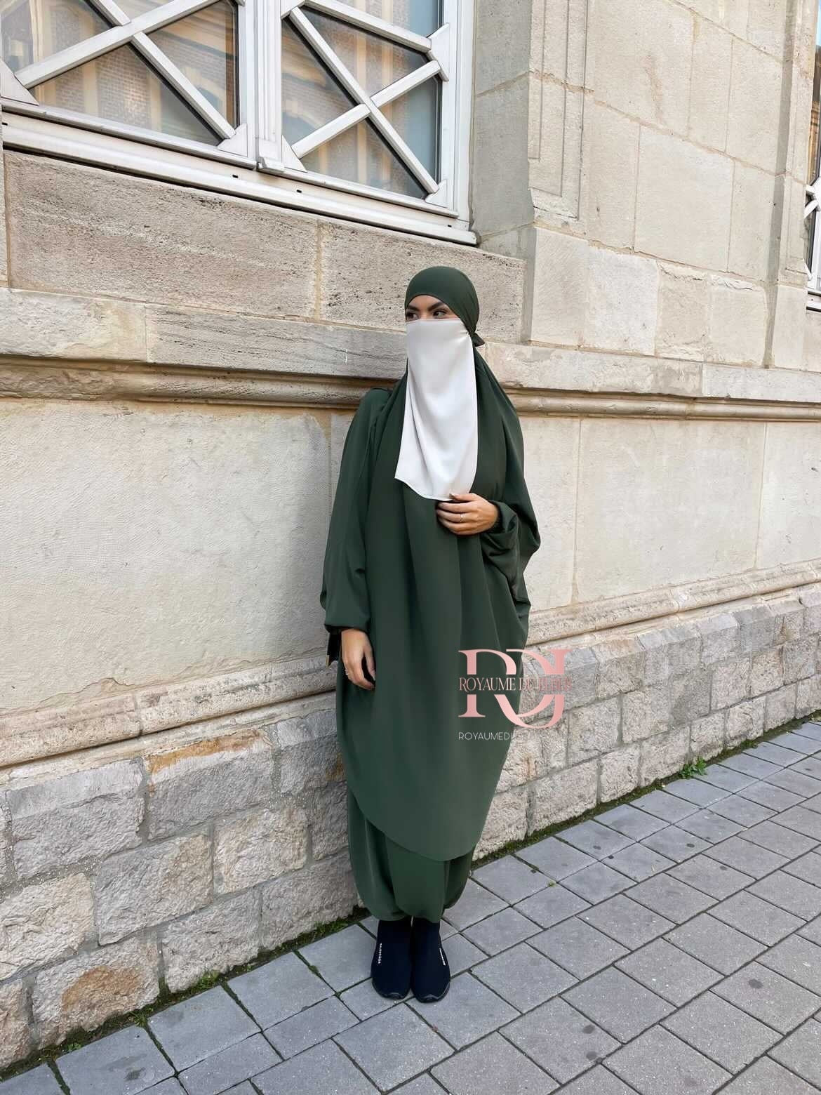 Jilbeb 2 pièces sarouel en soie de medine, couleur kaki