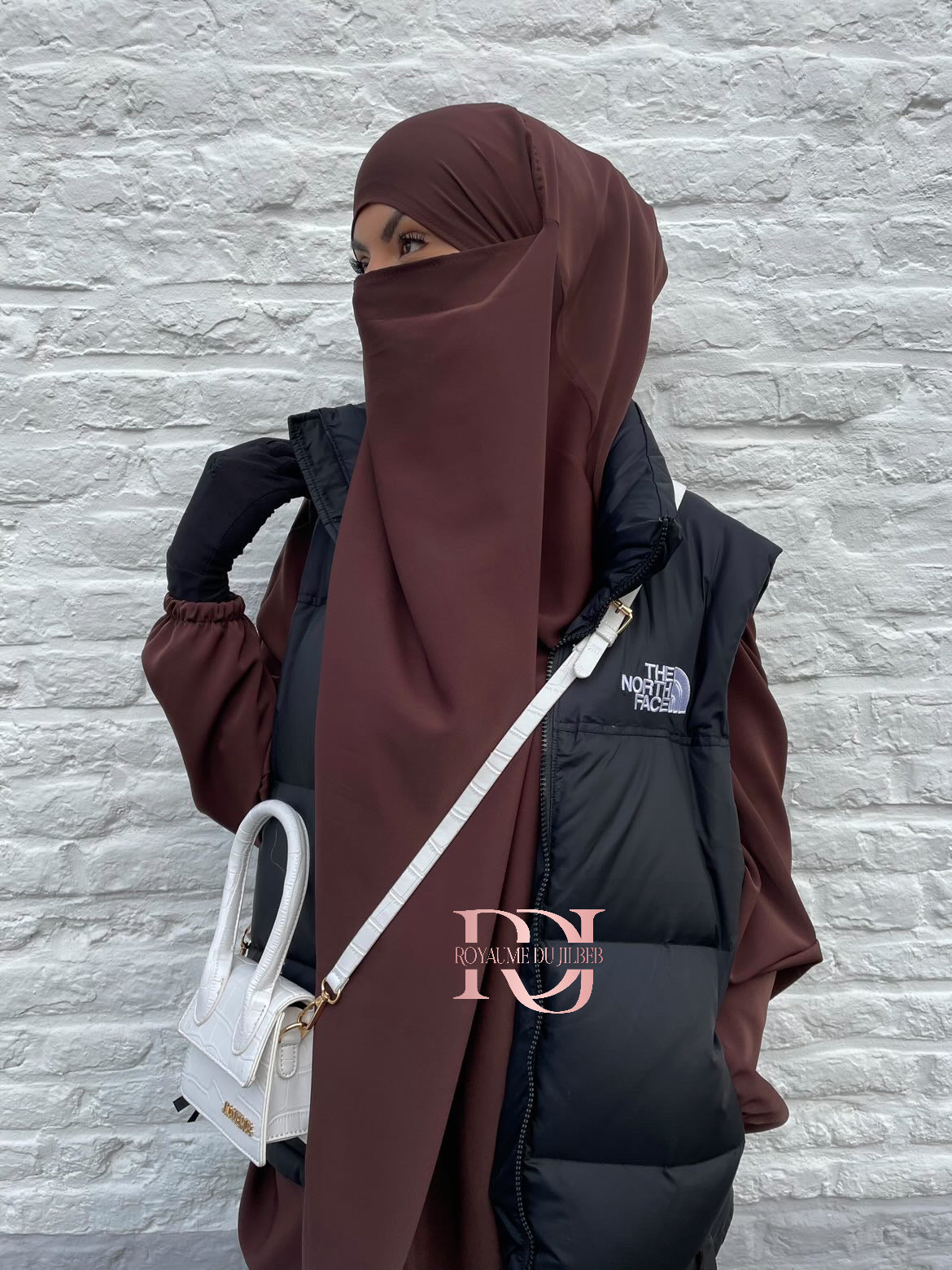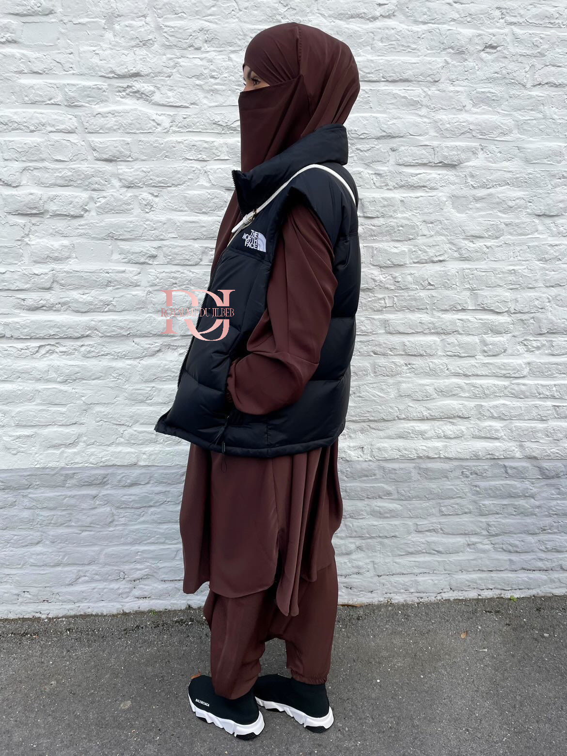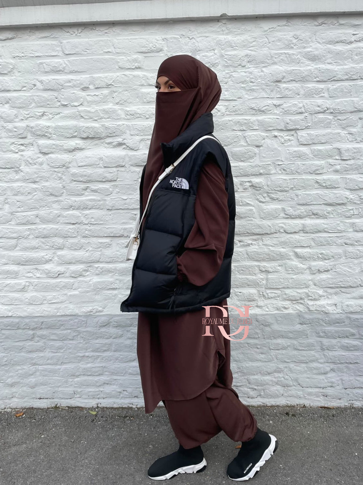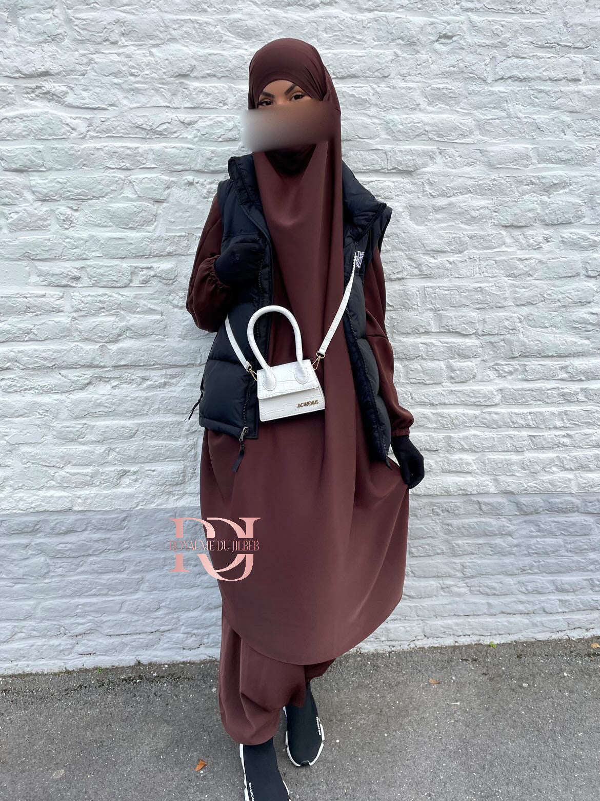 Jilbeb 2 pièces sarouel en soie de medine, couleur marron chocolat
