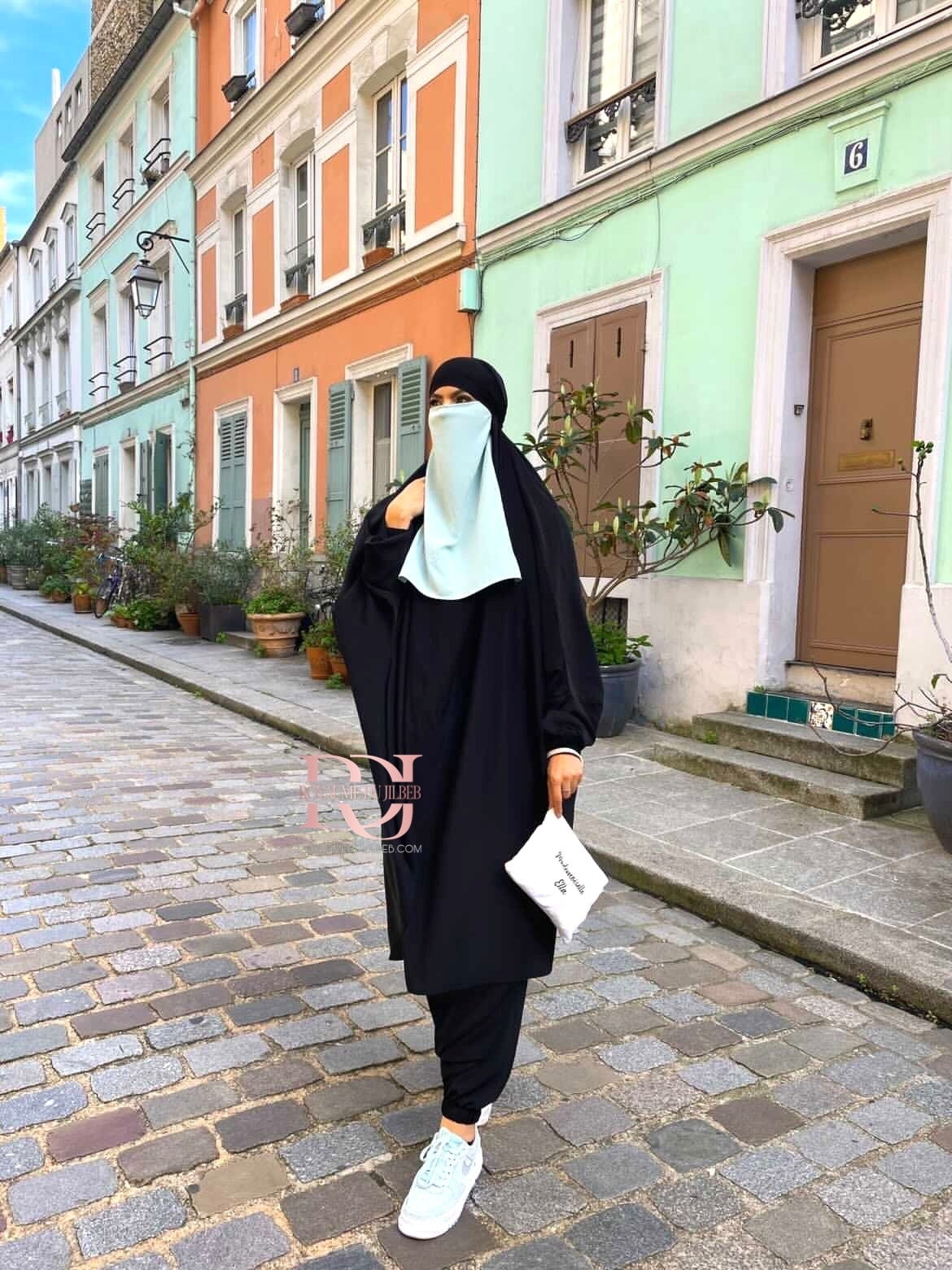 Jilbeb 2 pièces sarouel en soie de medine, couleur noir