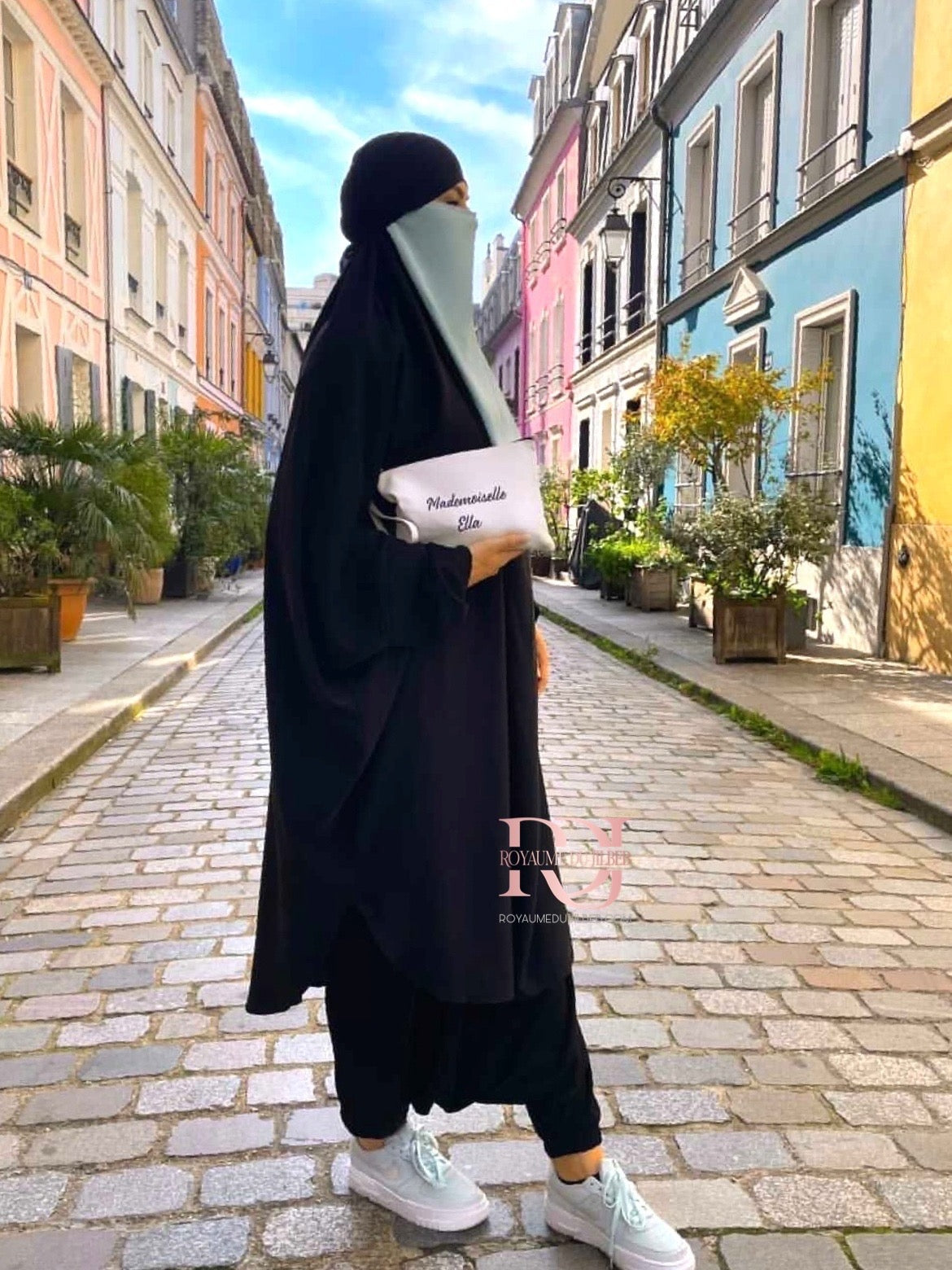 Jilbeb 2 pièces composé d'une cape et d'un sarouel, en tissu de qualité supérieure en soie de medine (doux et fluide)