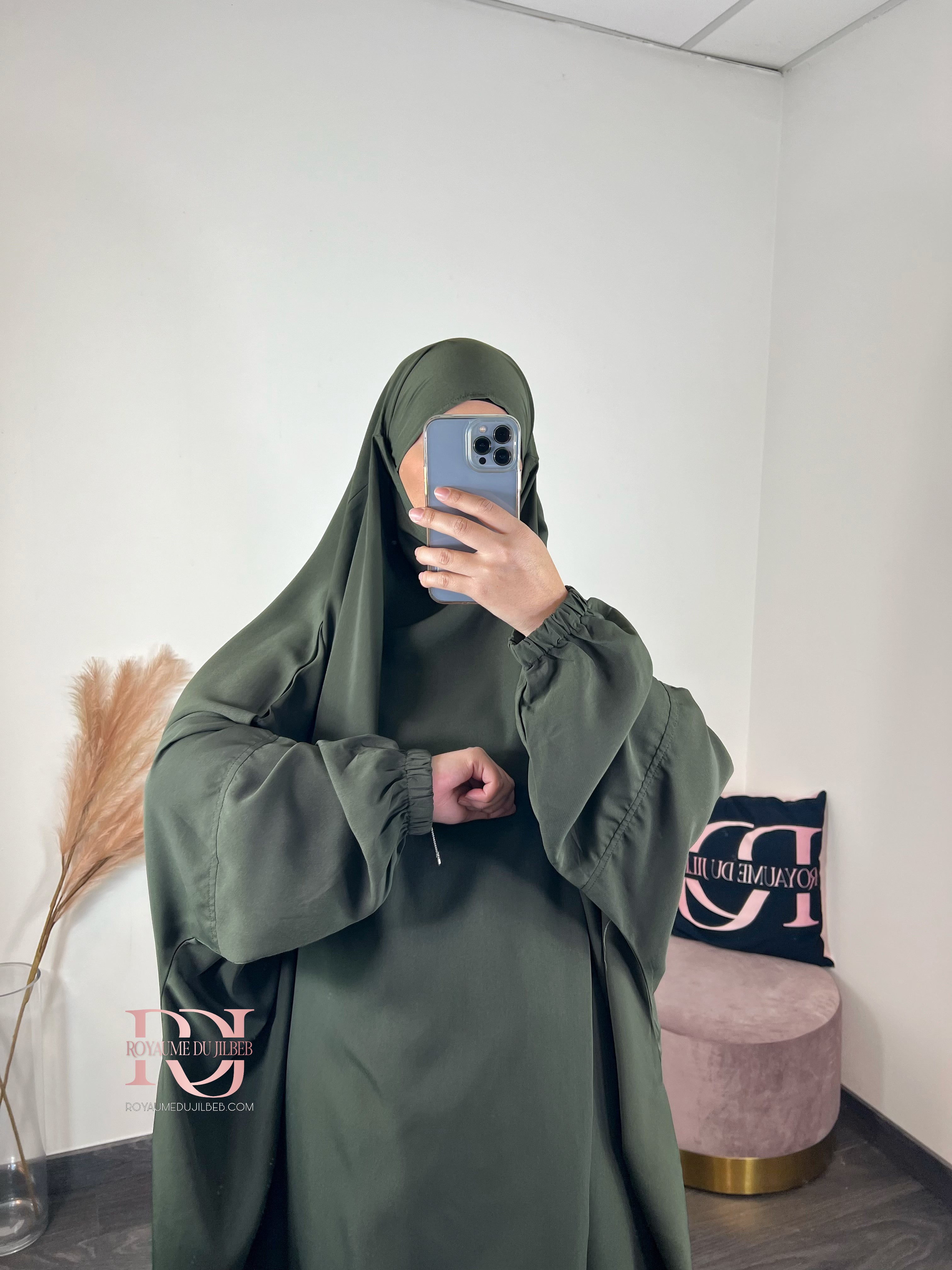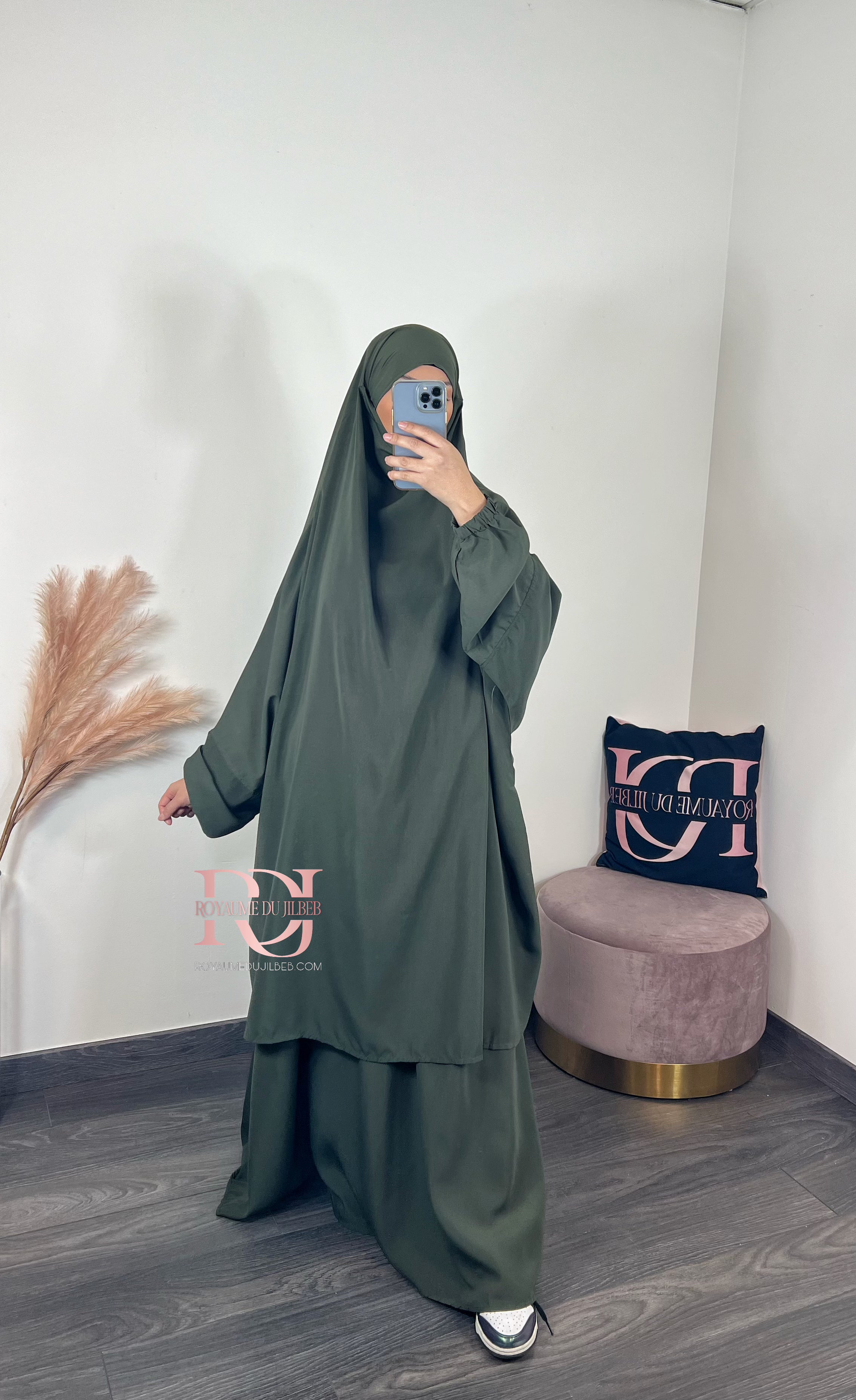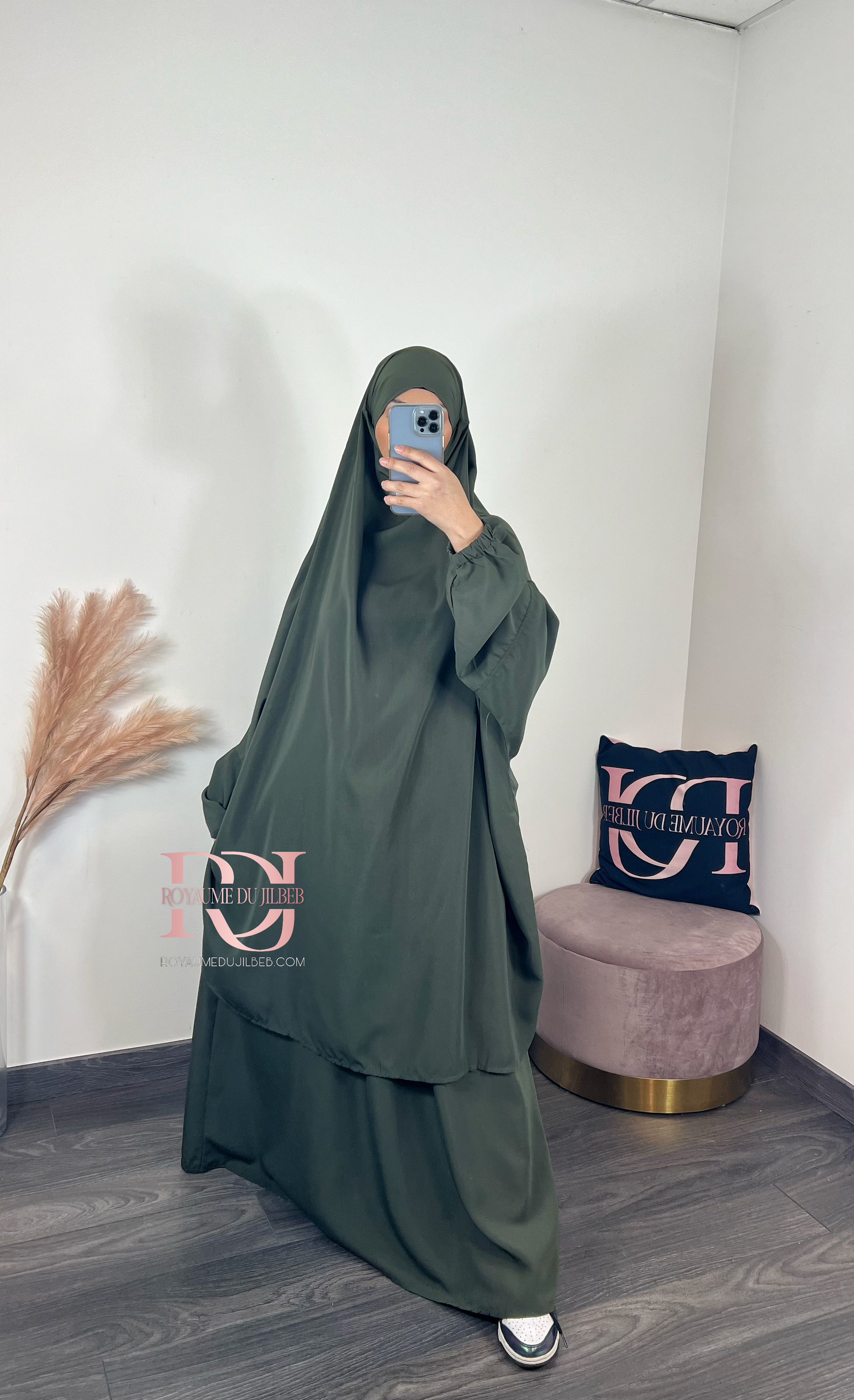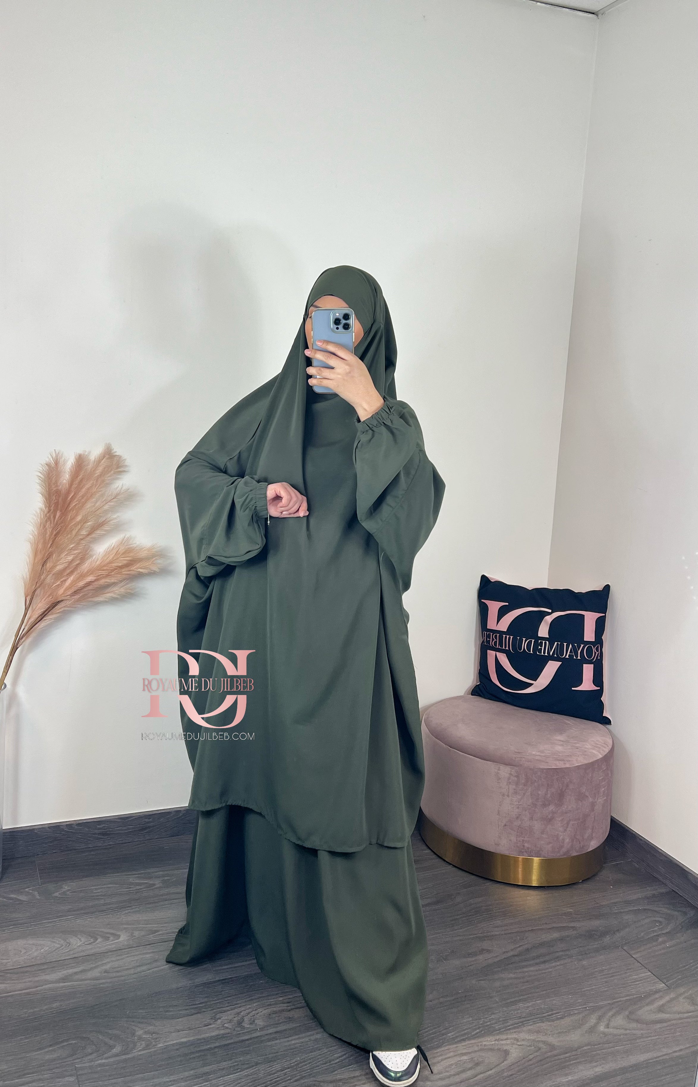 Jilbeb microfibre, 2 pièces jupe couleur kaki
