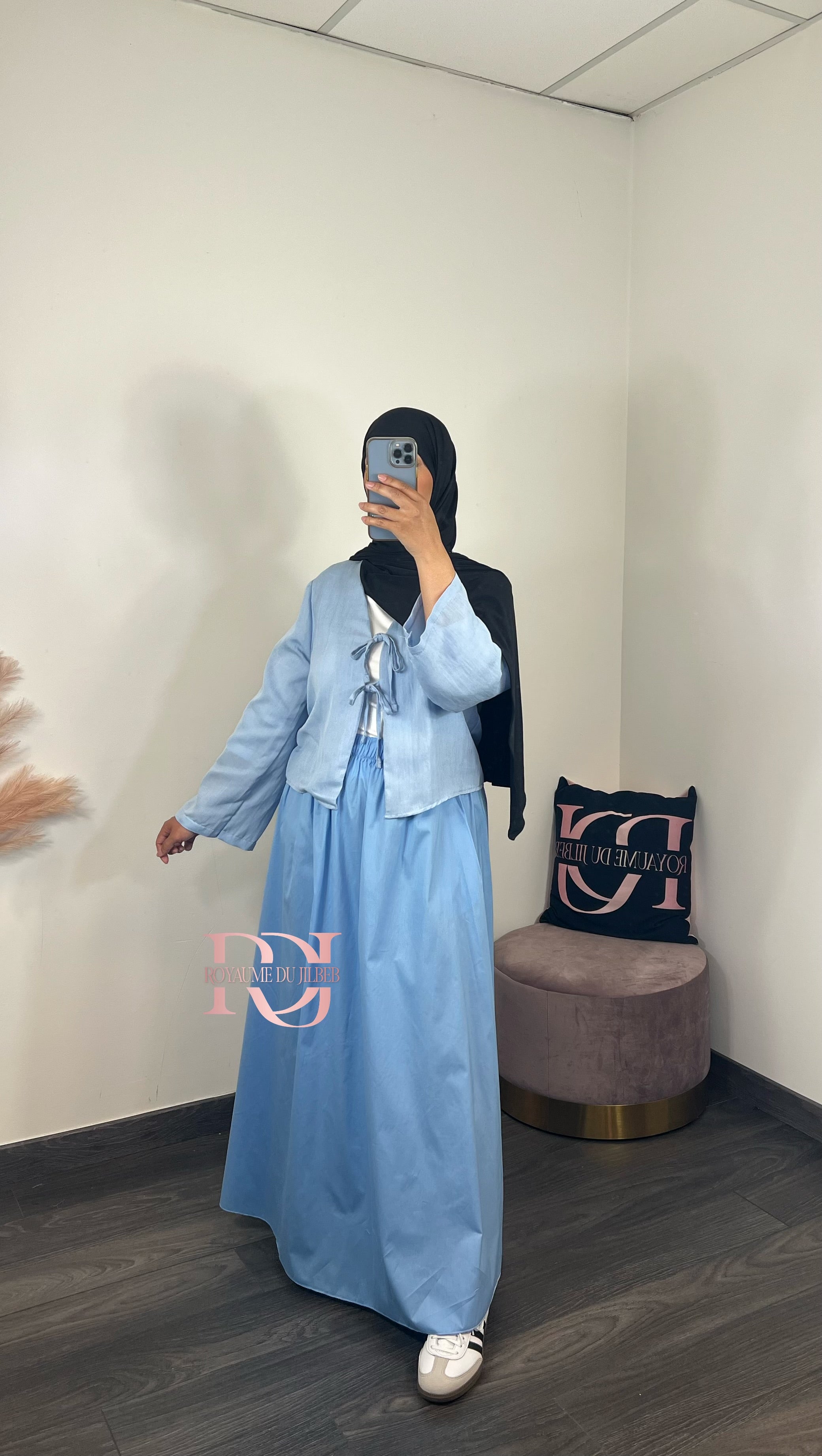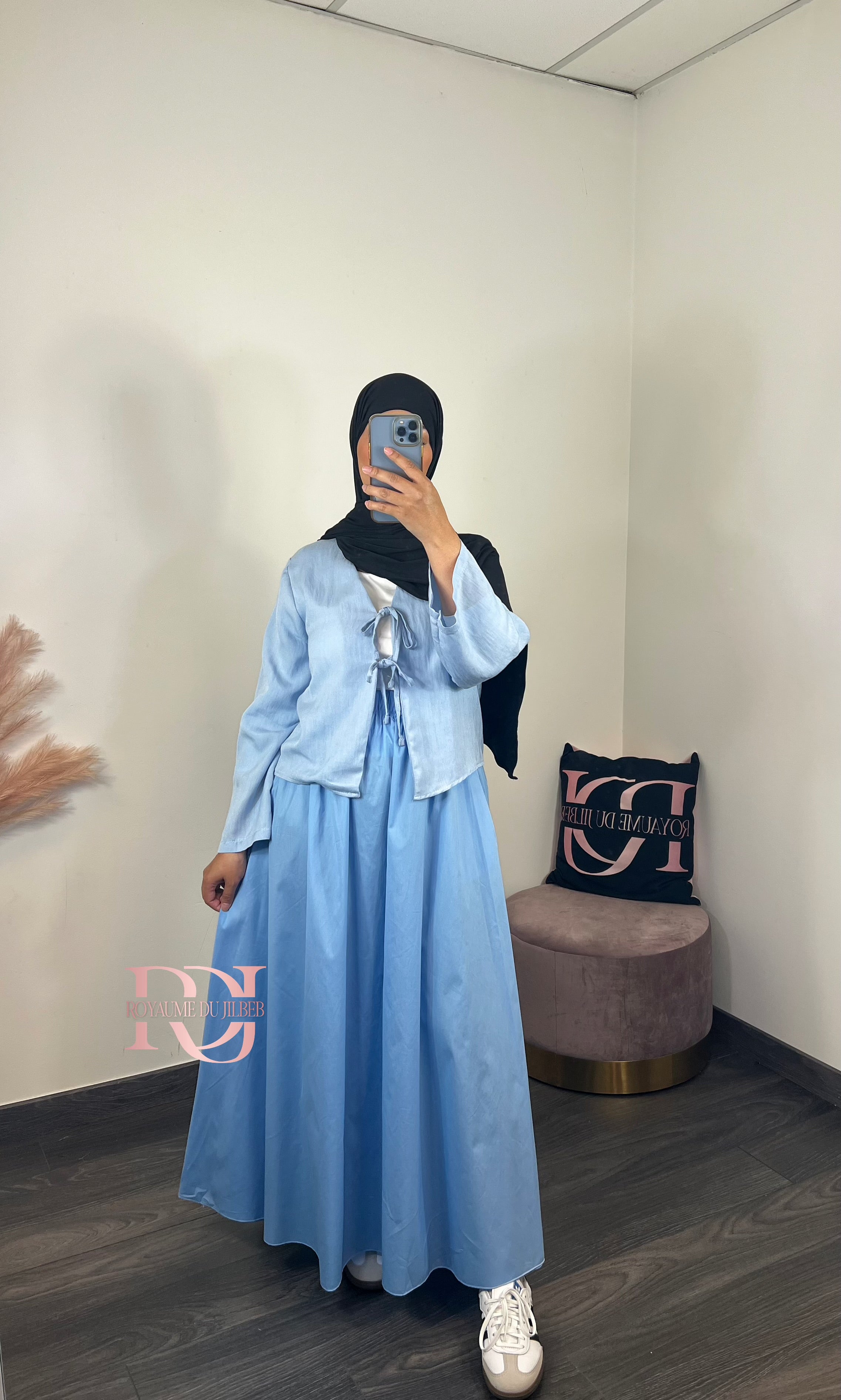 Jupe popeline, couleur bleu