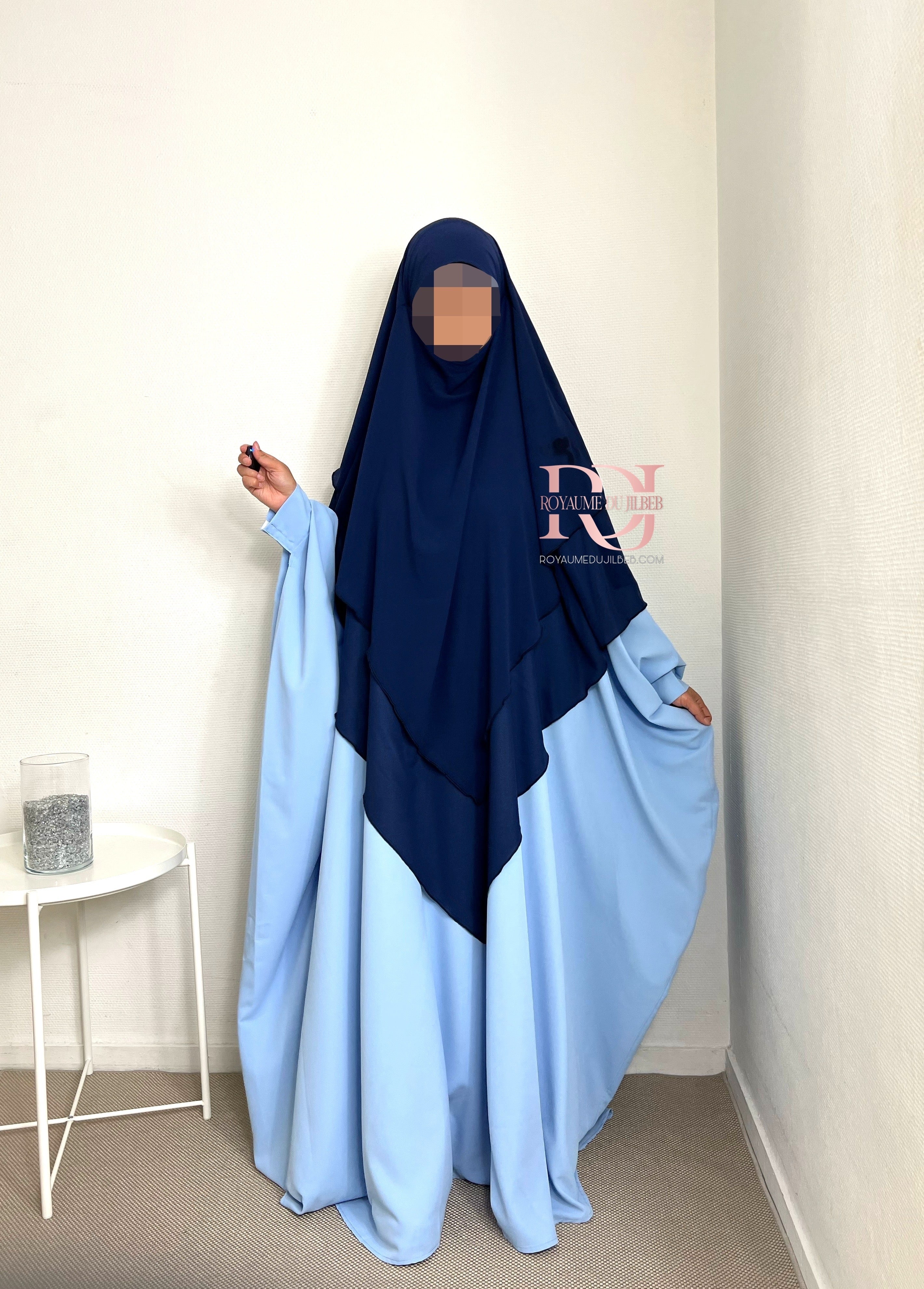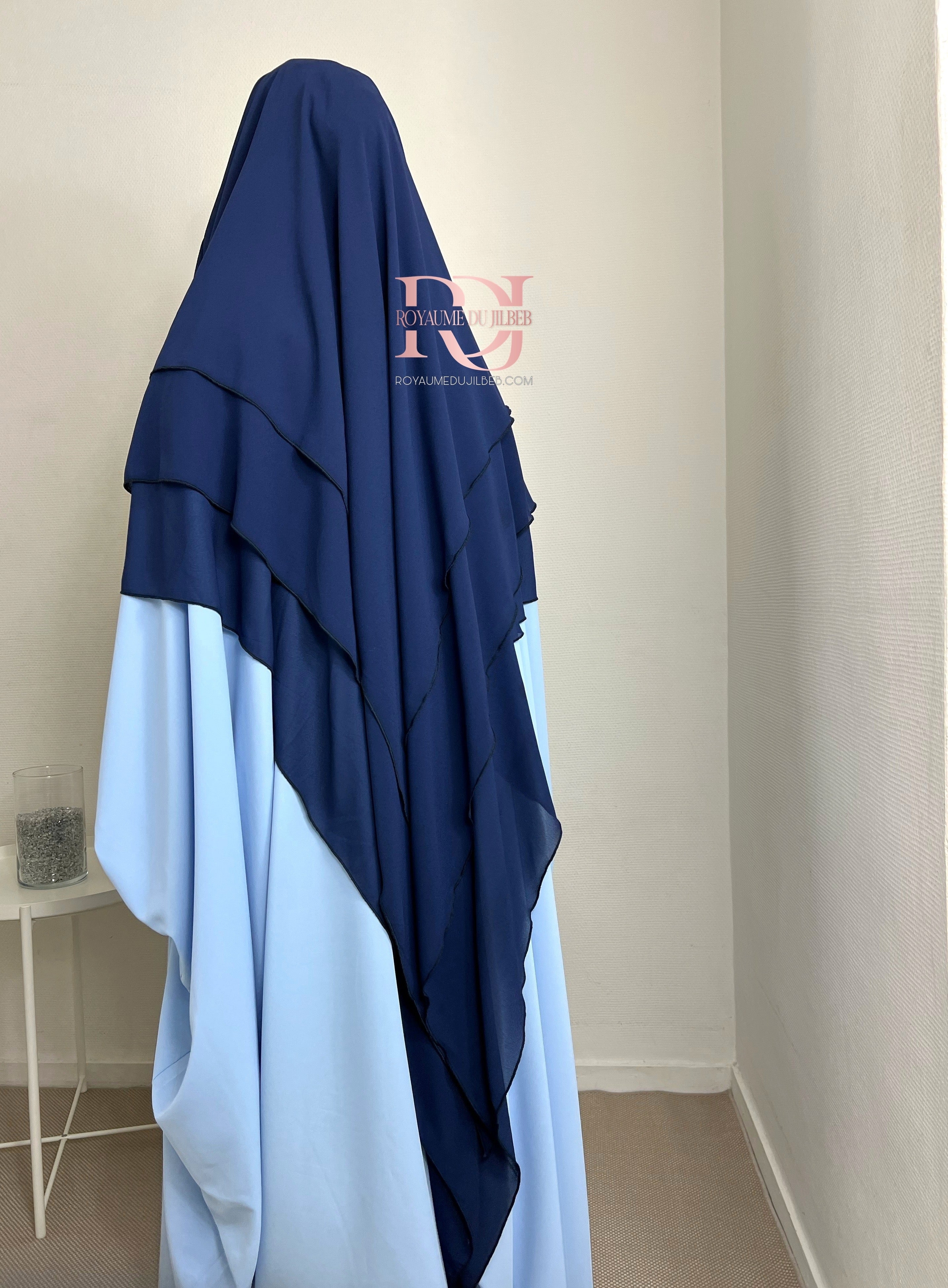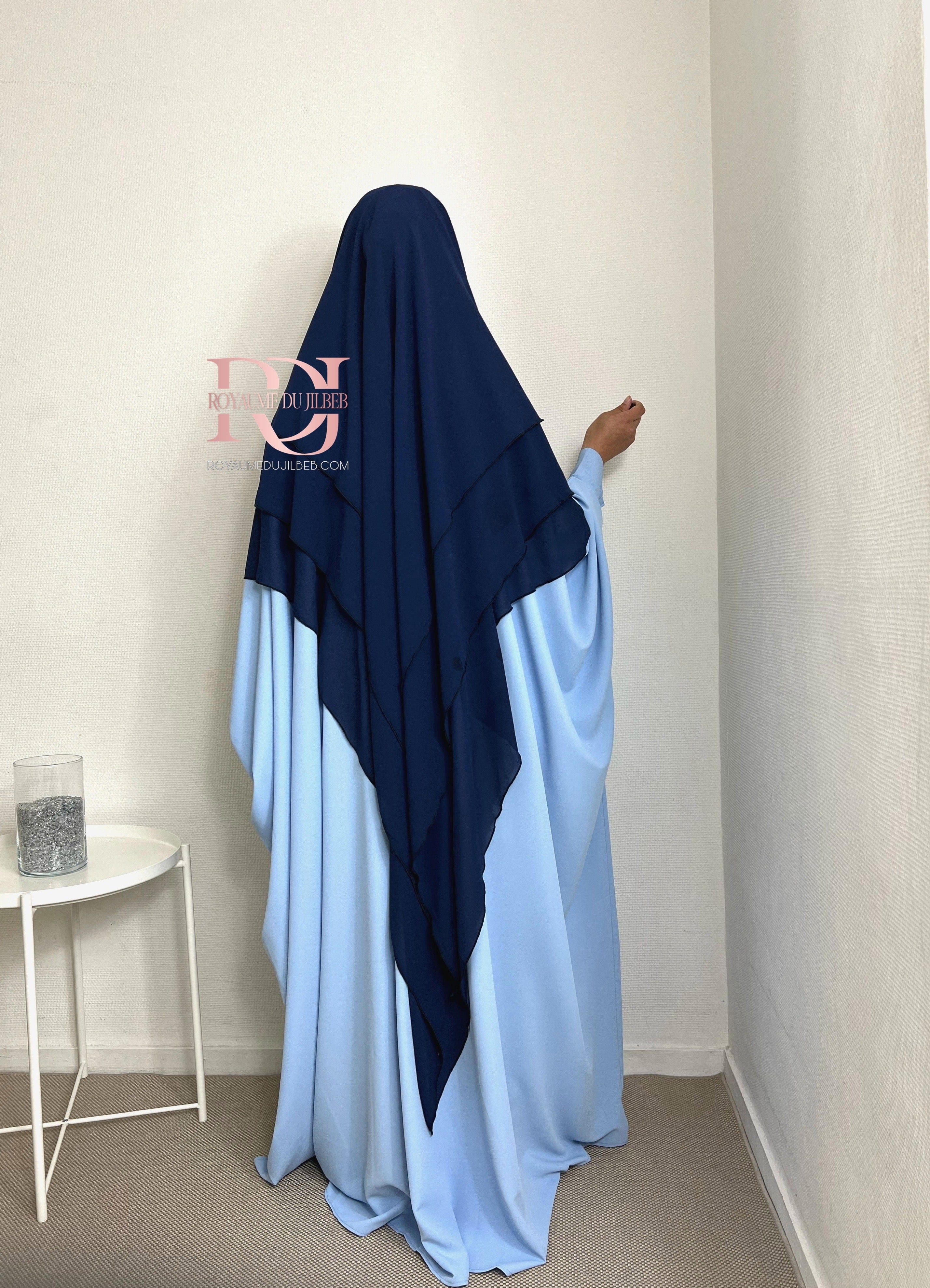 Khimar mousseline 3 voiles, couleur bleu nuit