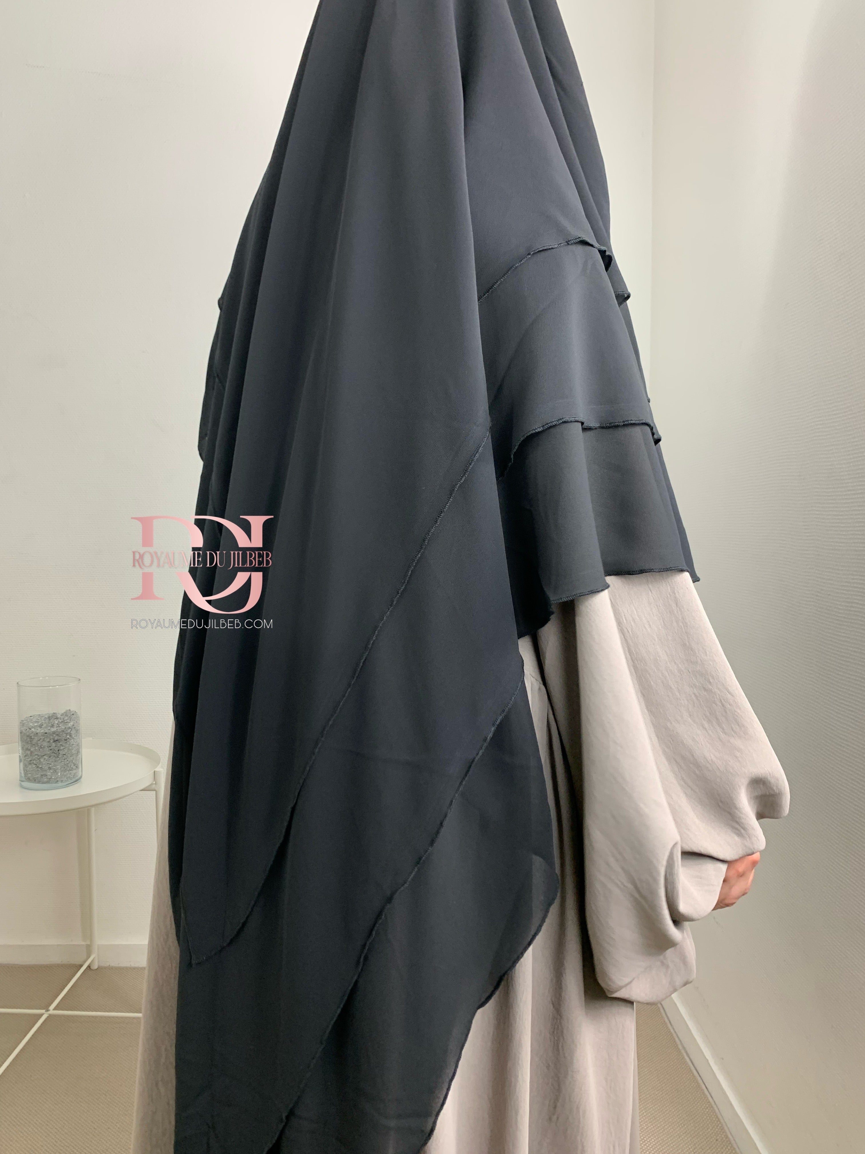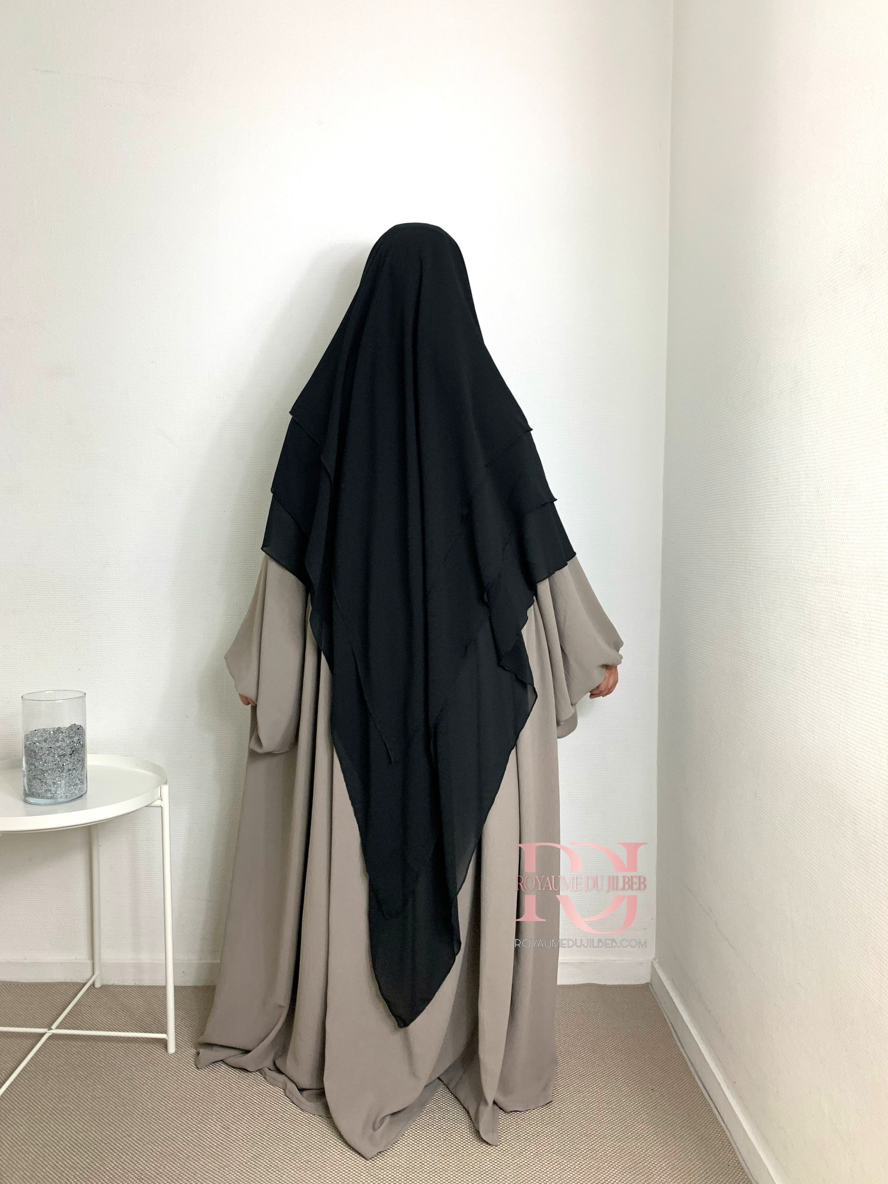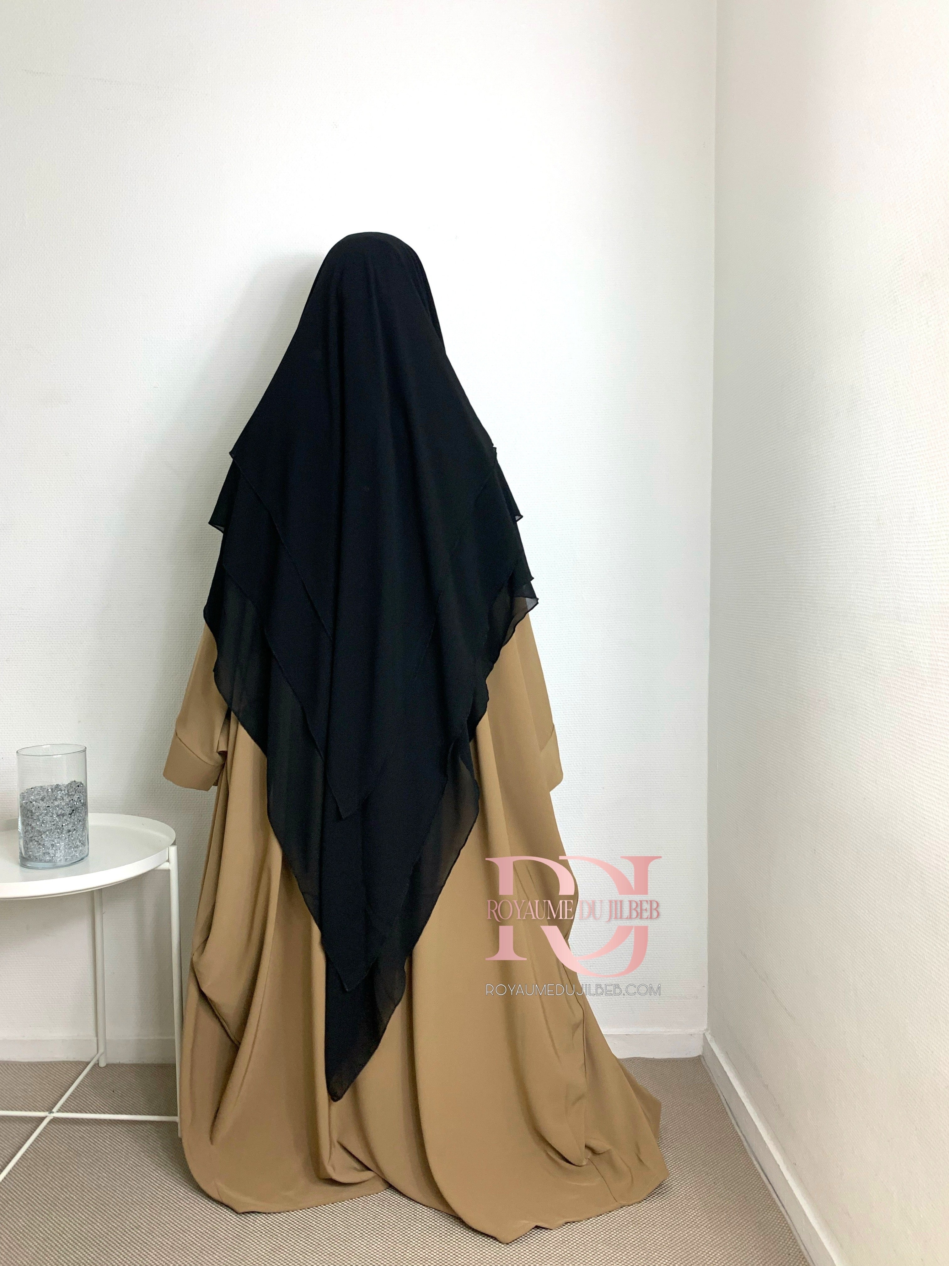 Khimar mousseline 3 voiles, couleur noir