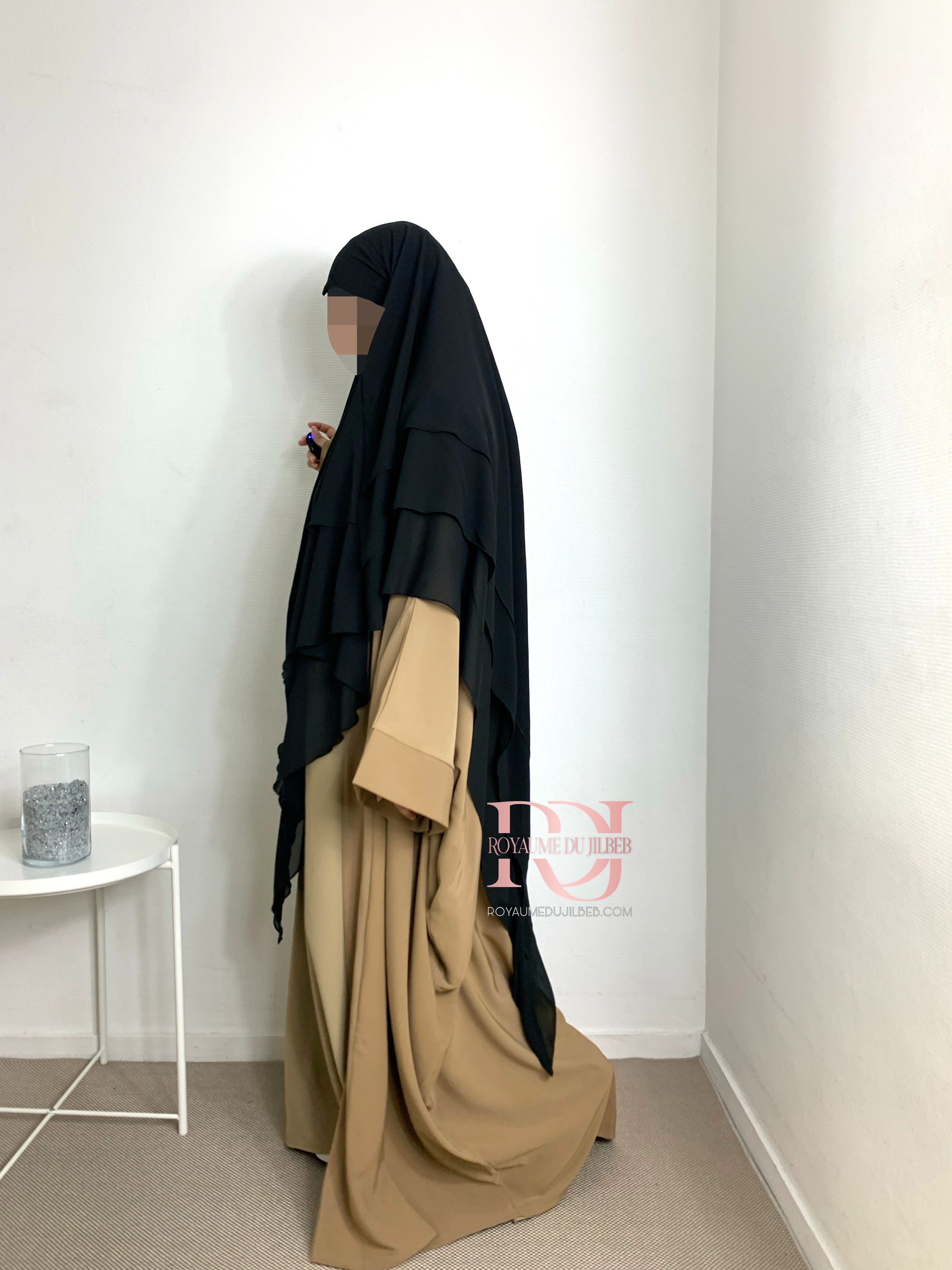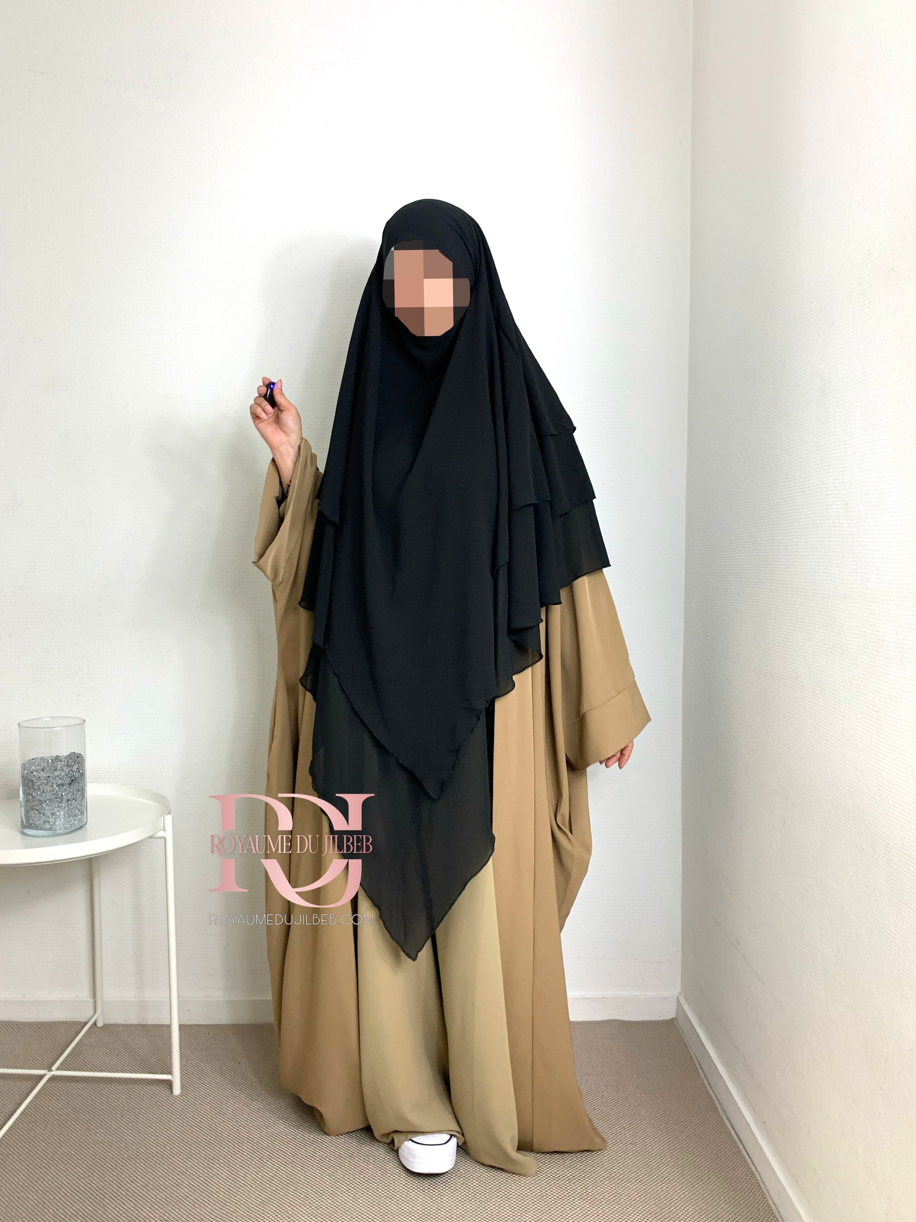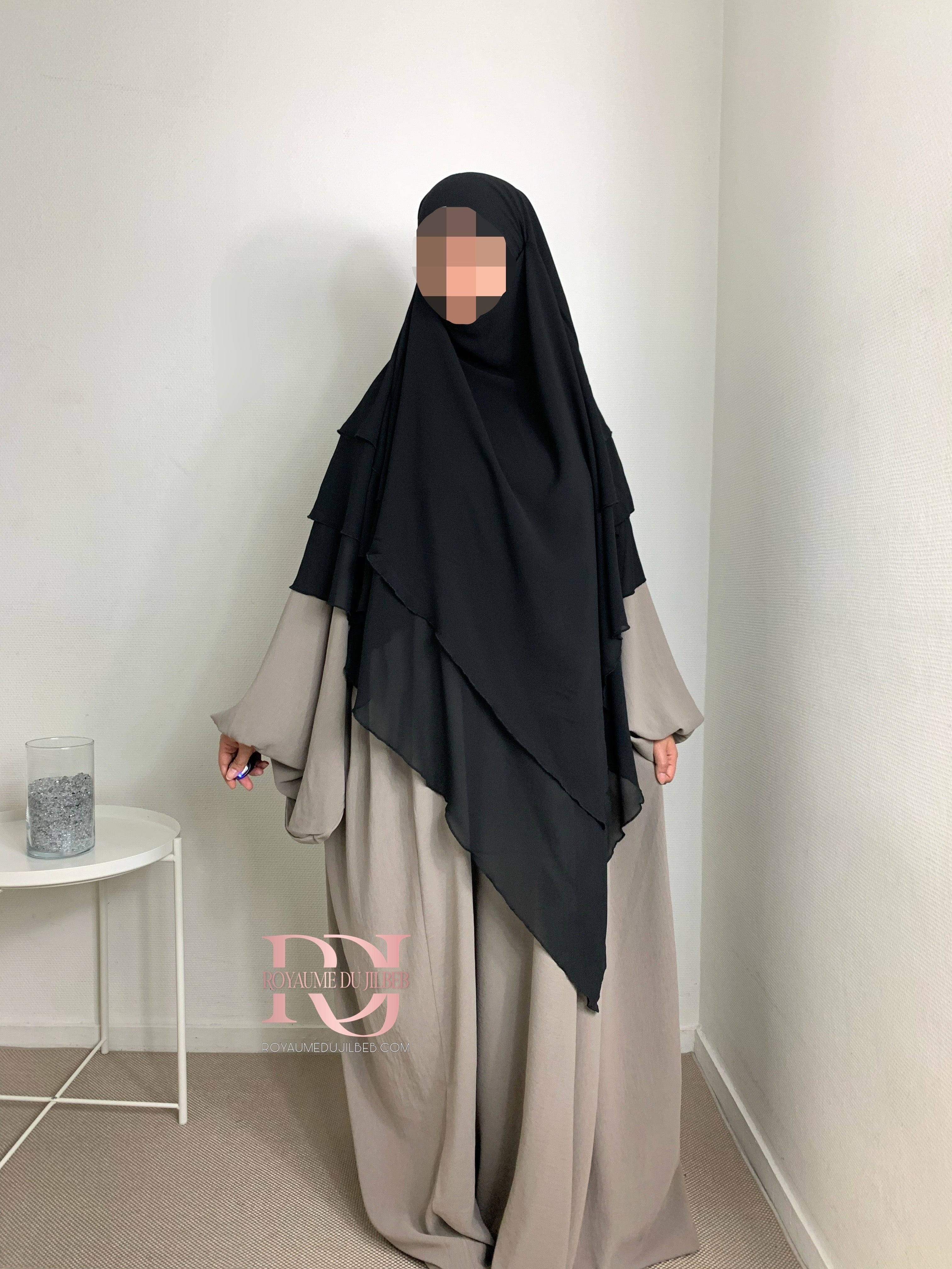 Khimar mousseline 3 voiles, couleur noir