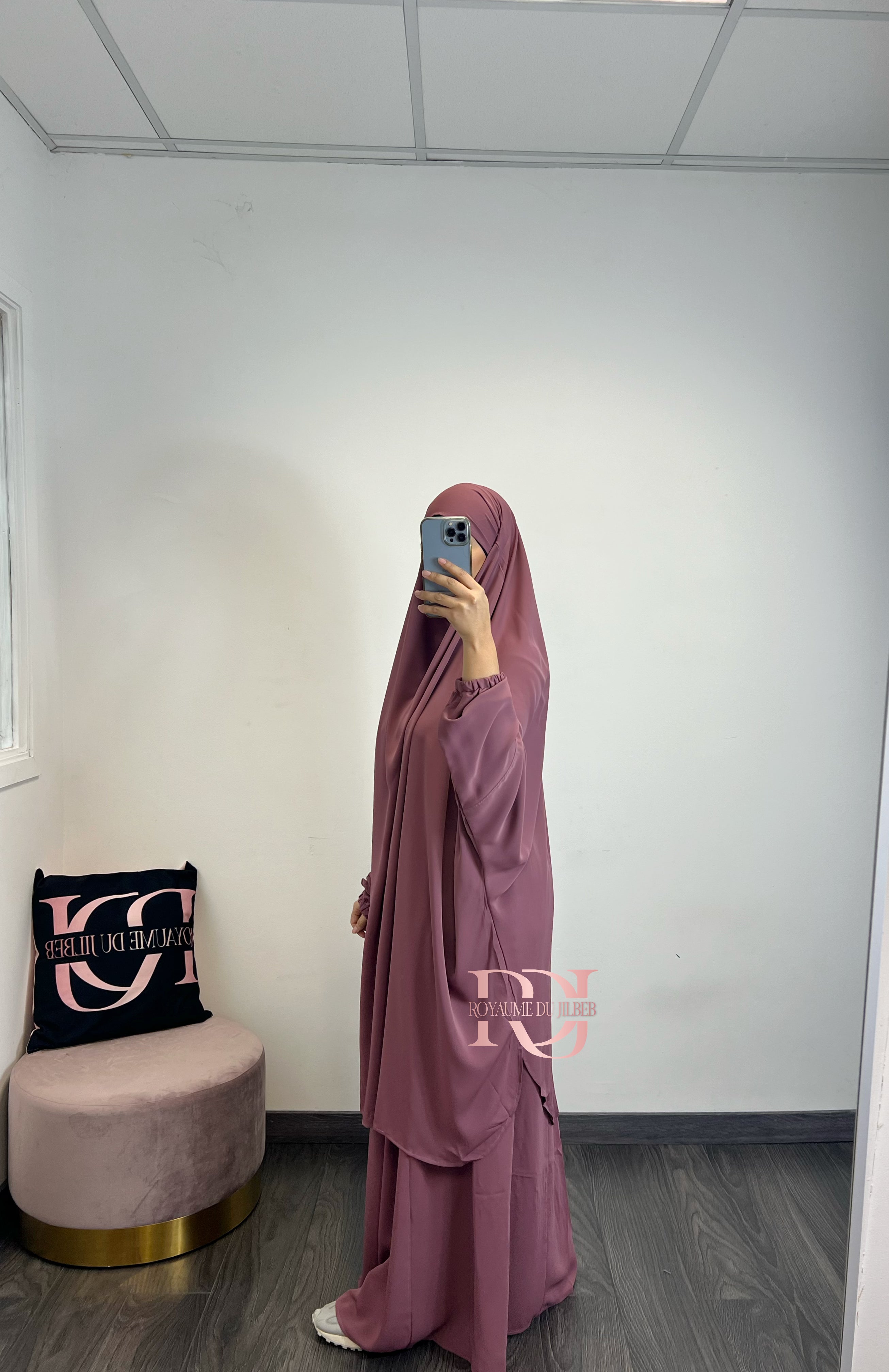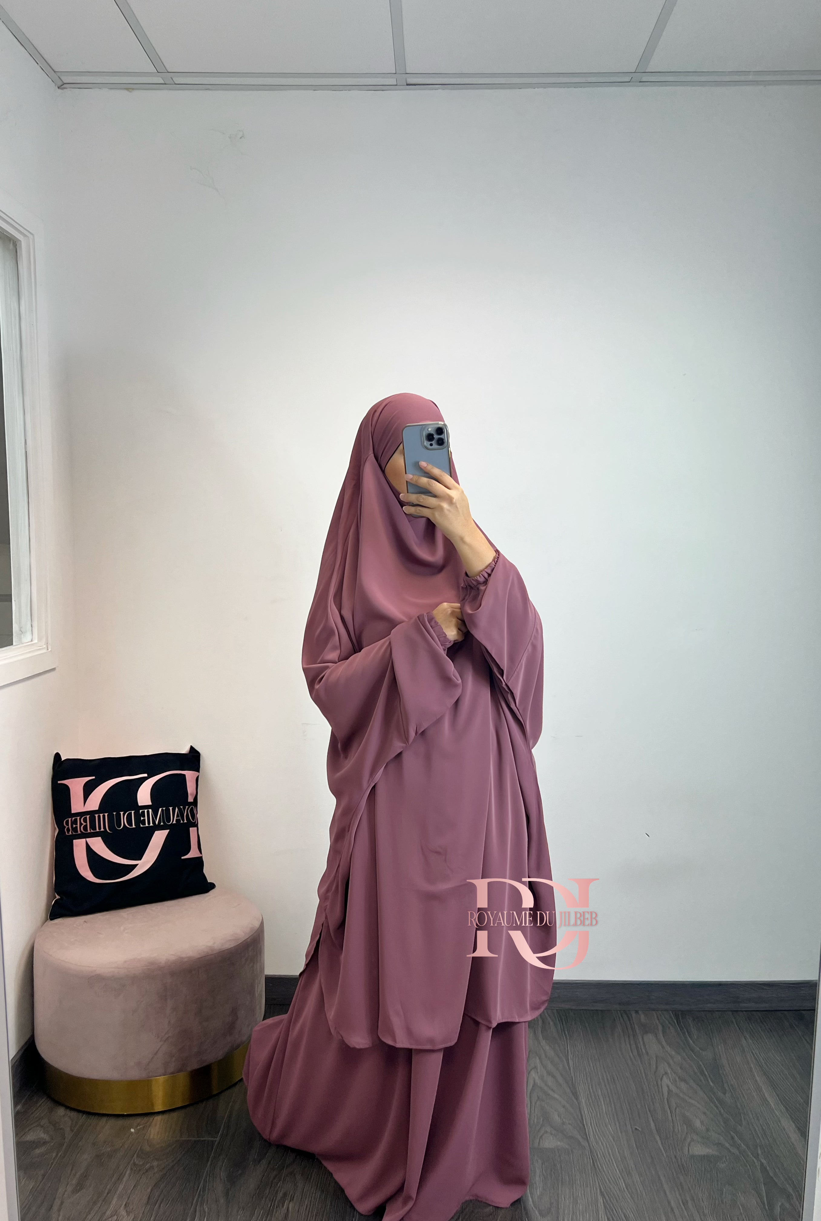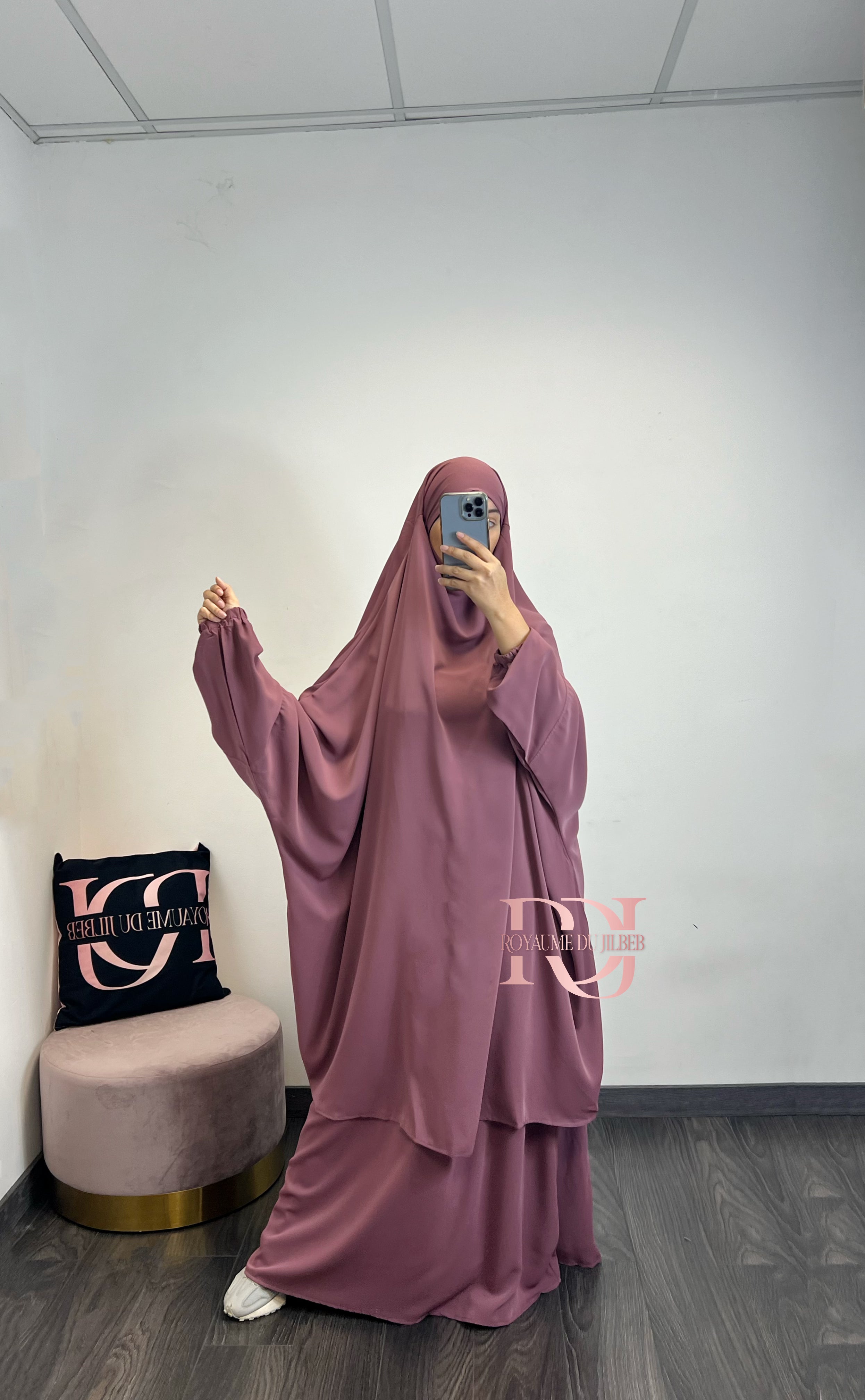 Jilbeb 2 pieces jupe soie de medine, couleur bois de rose