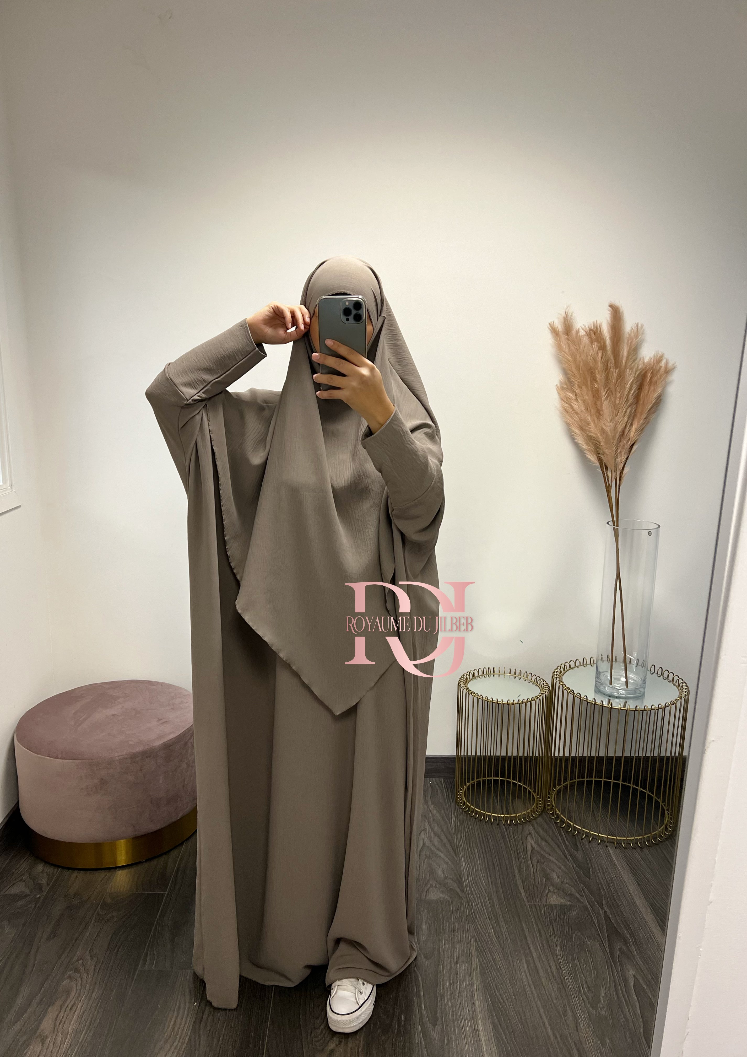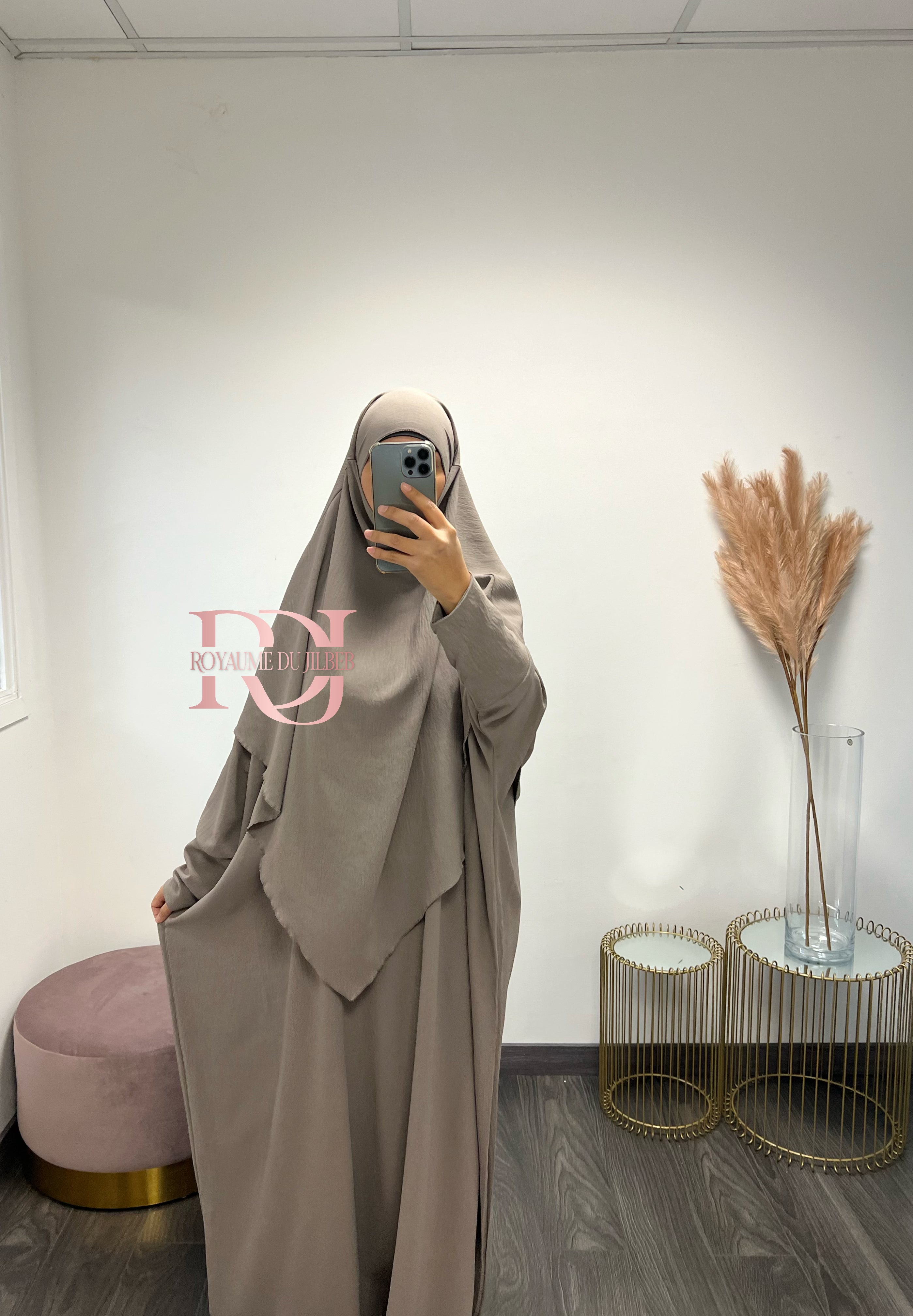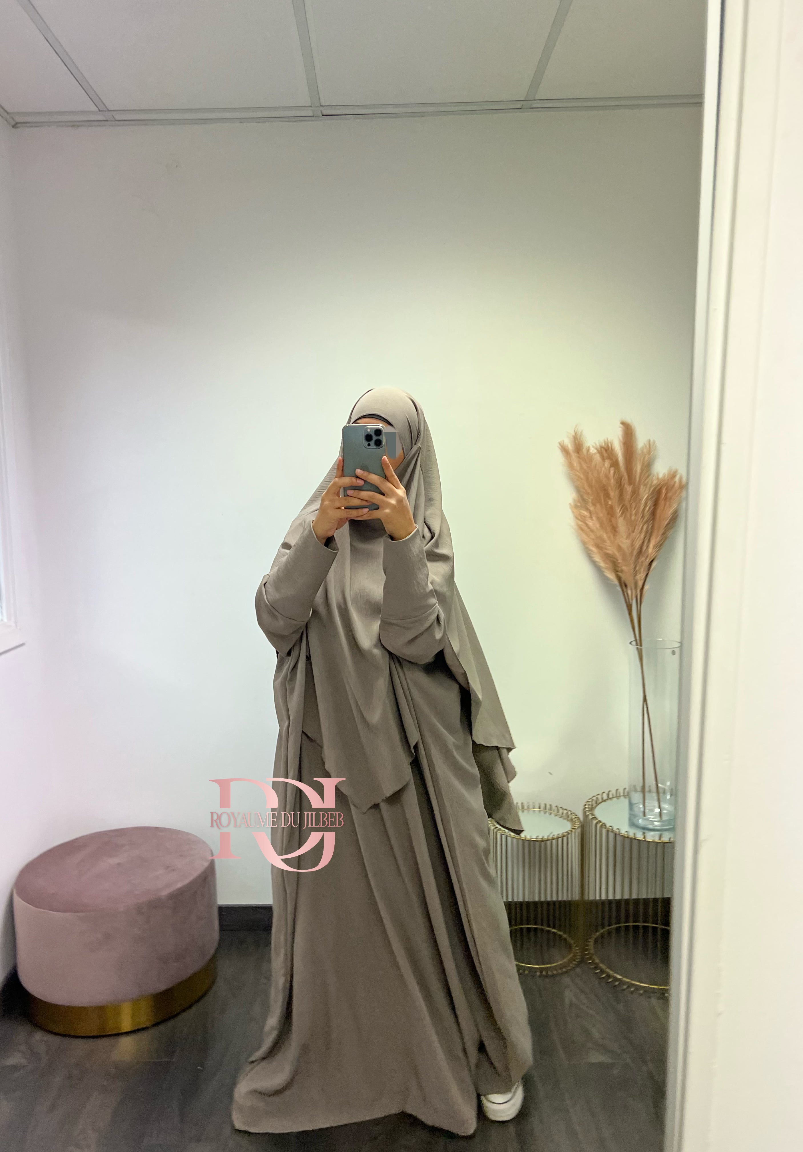 Ensemble Abaya + Khimar Jazz, couleur taupe