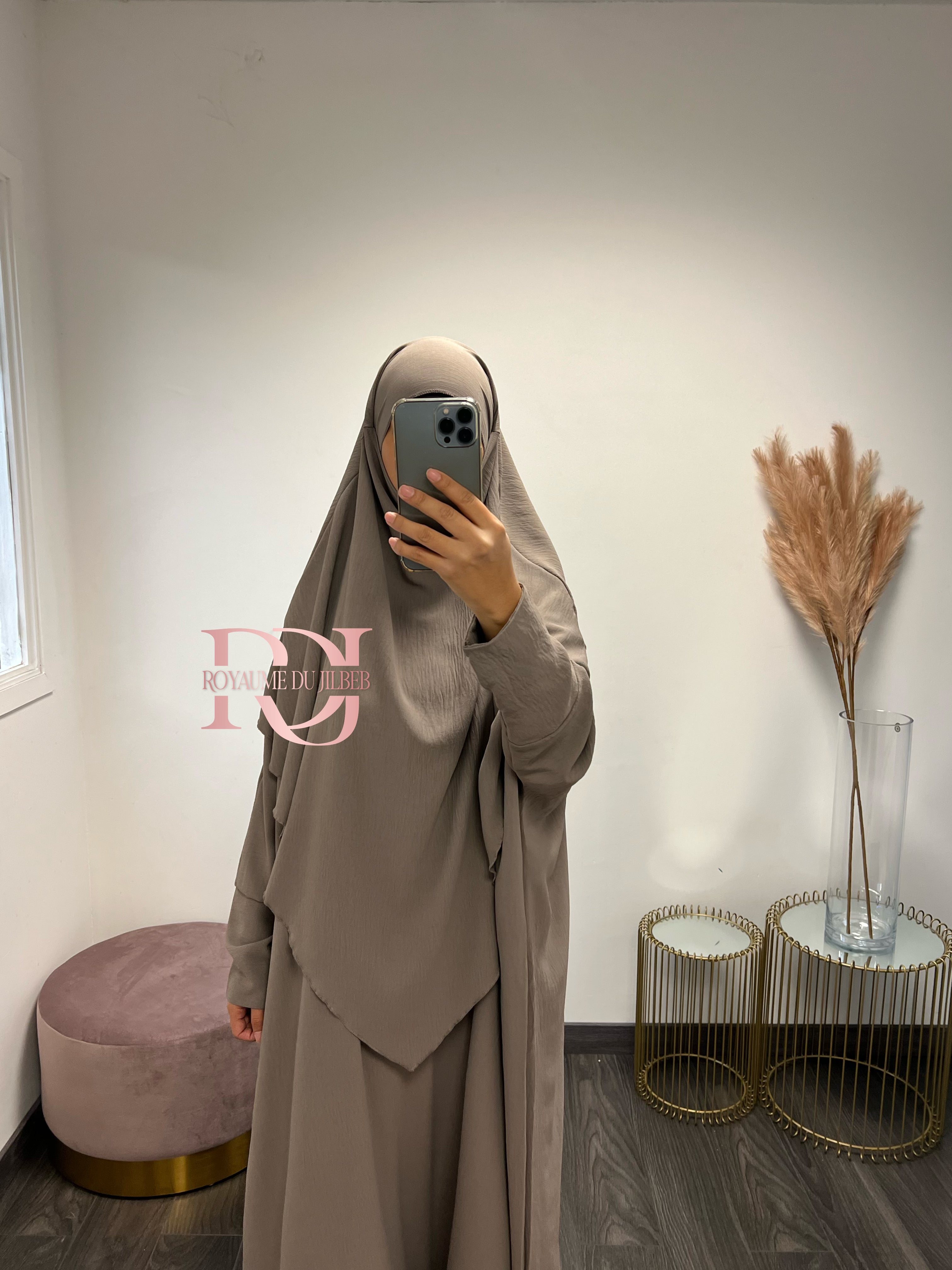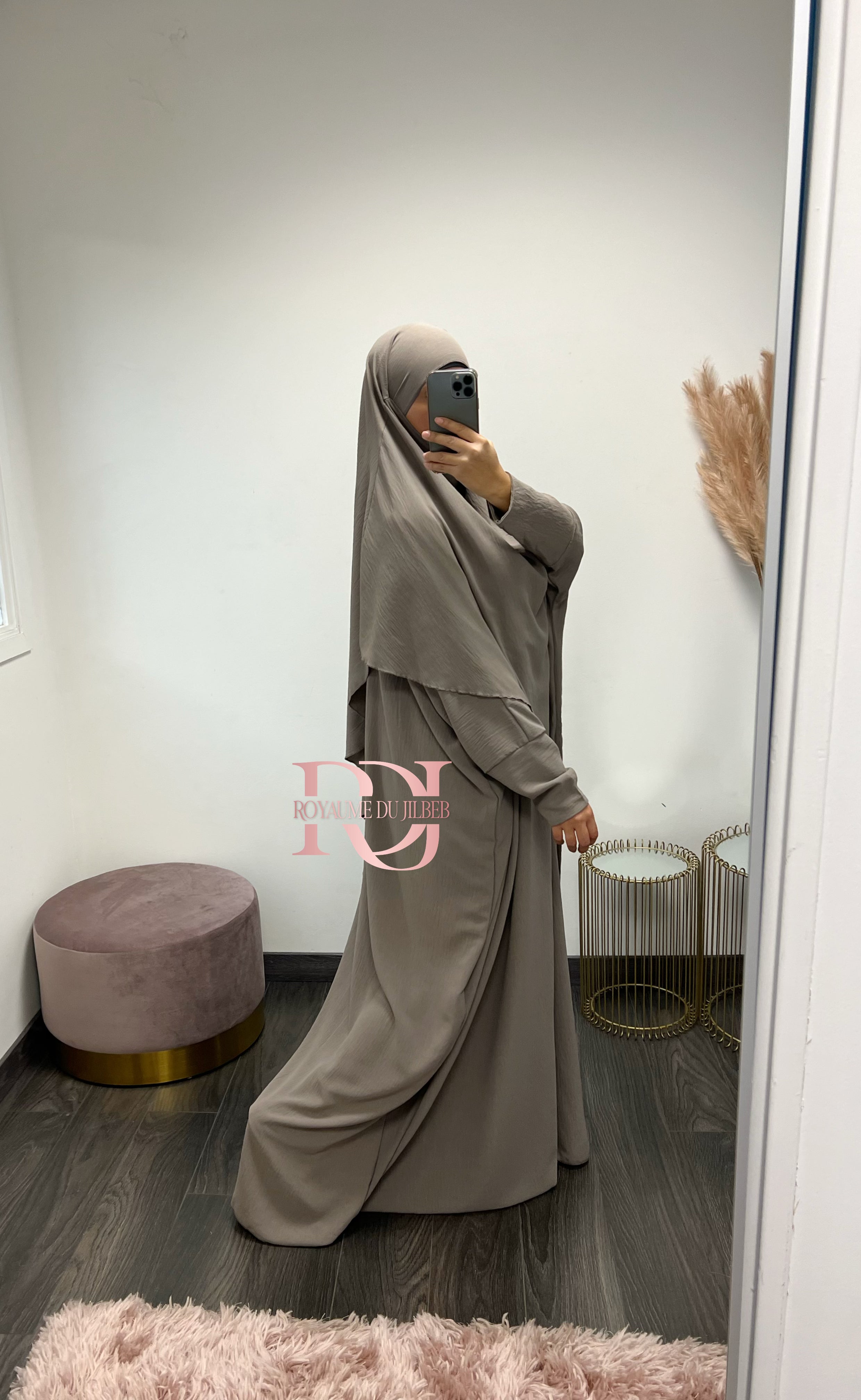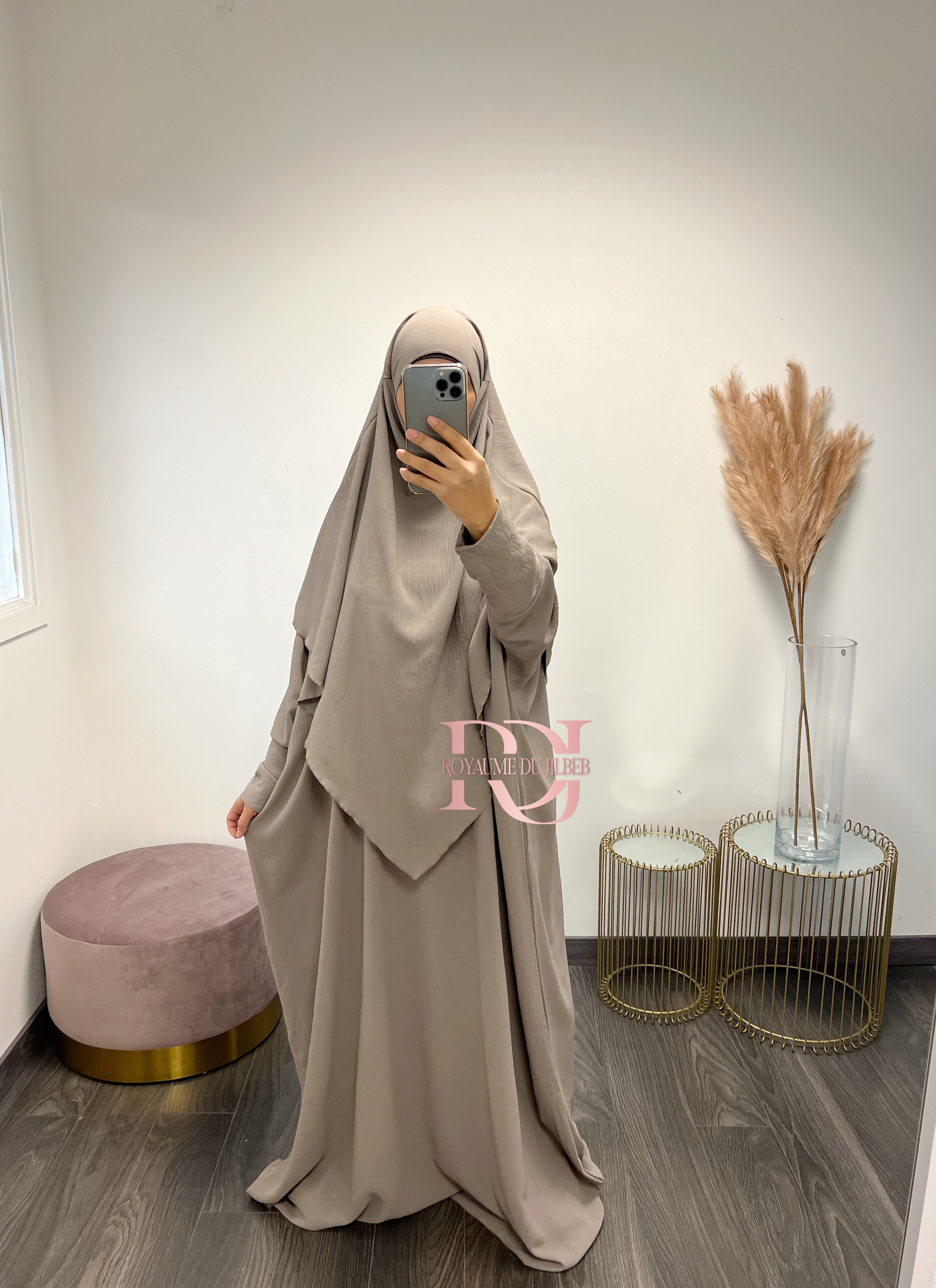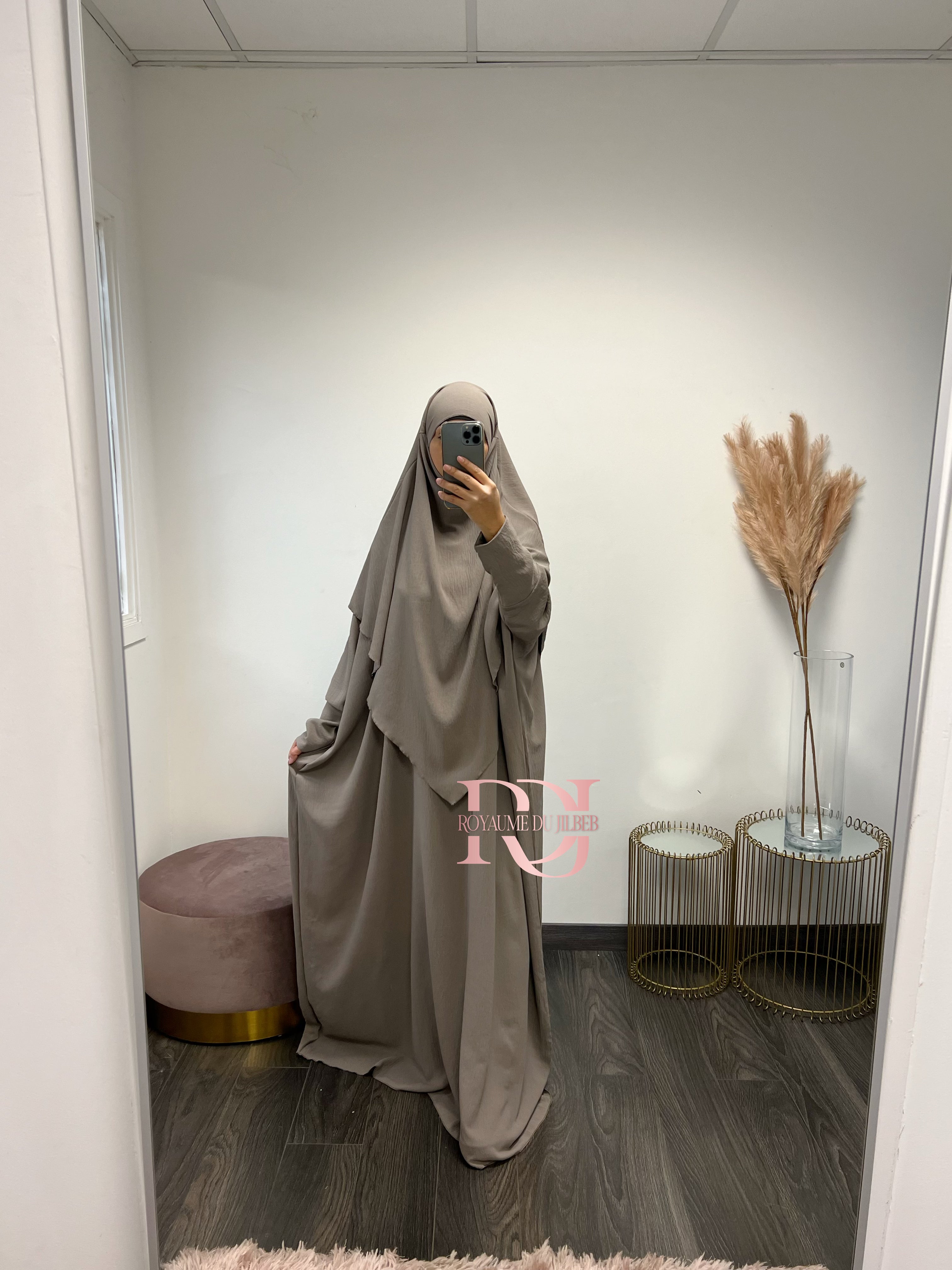 Ensemble Abaya + Khimar Jazz, couleur taupe