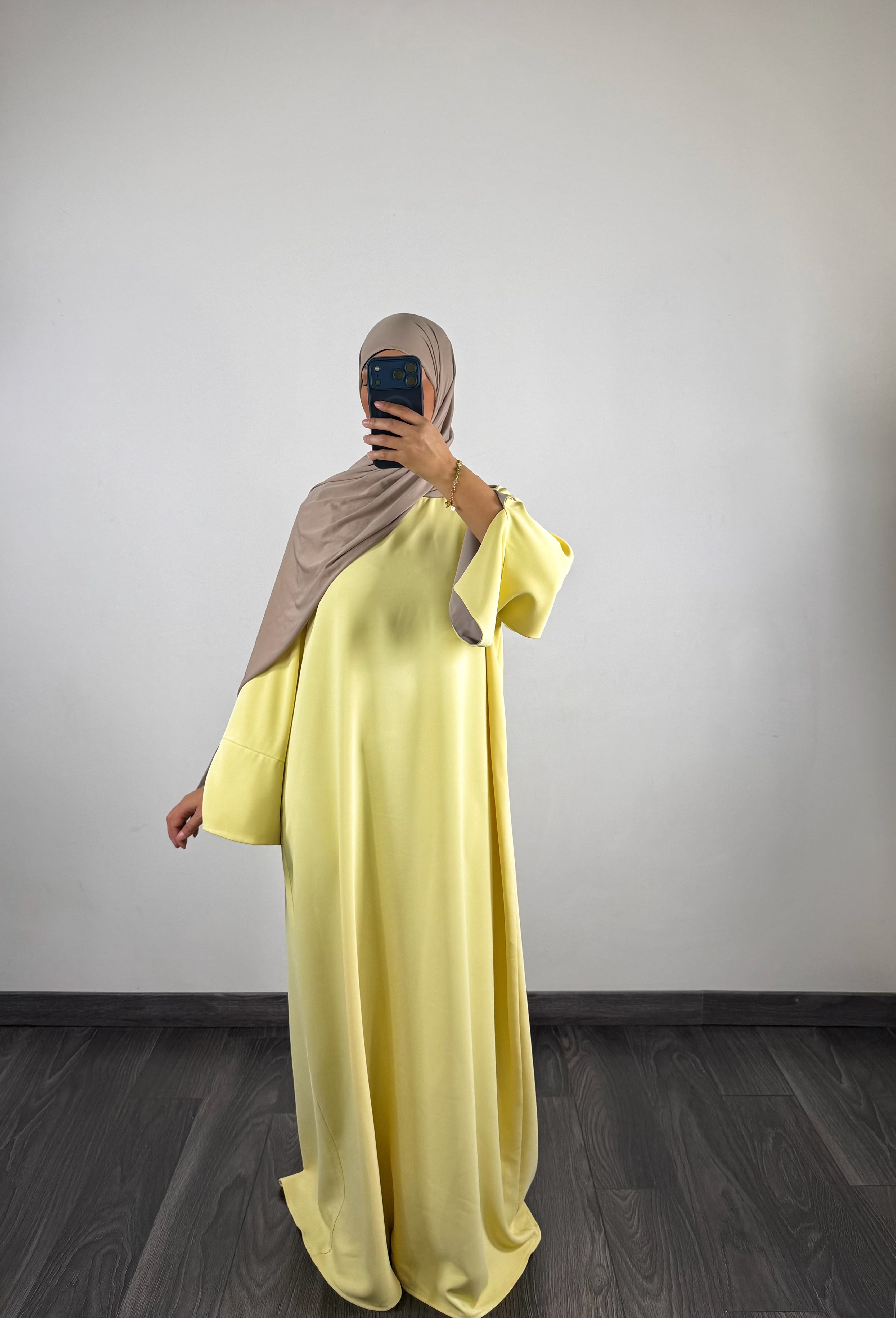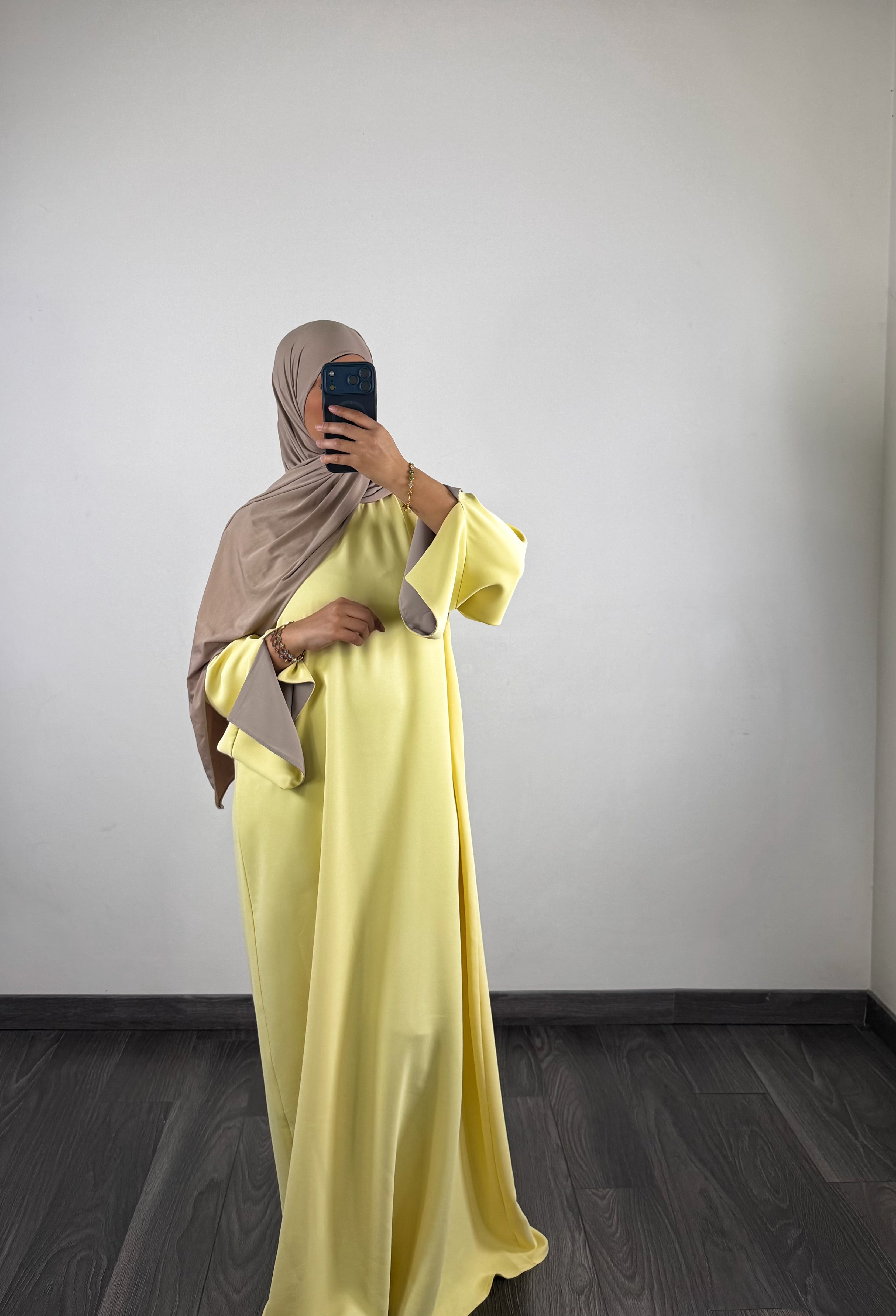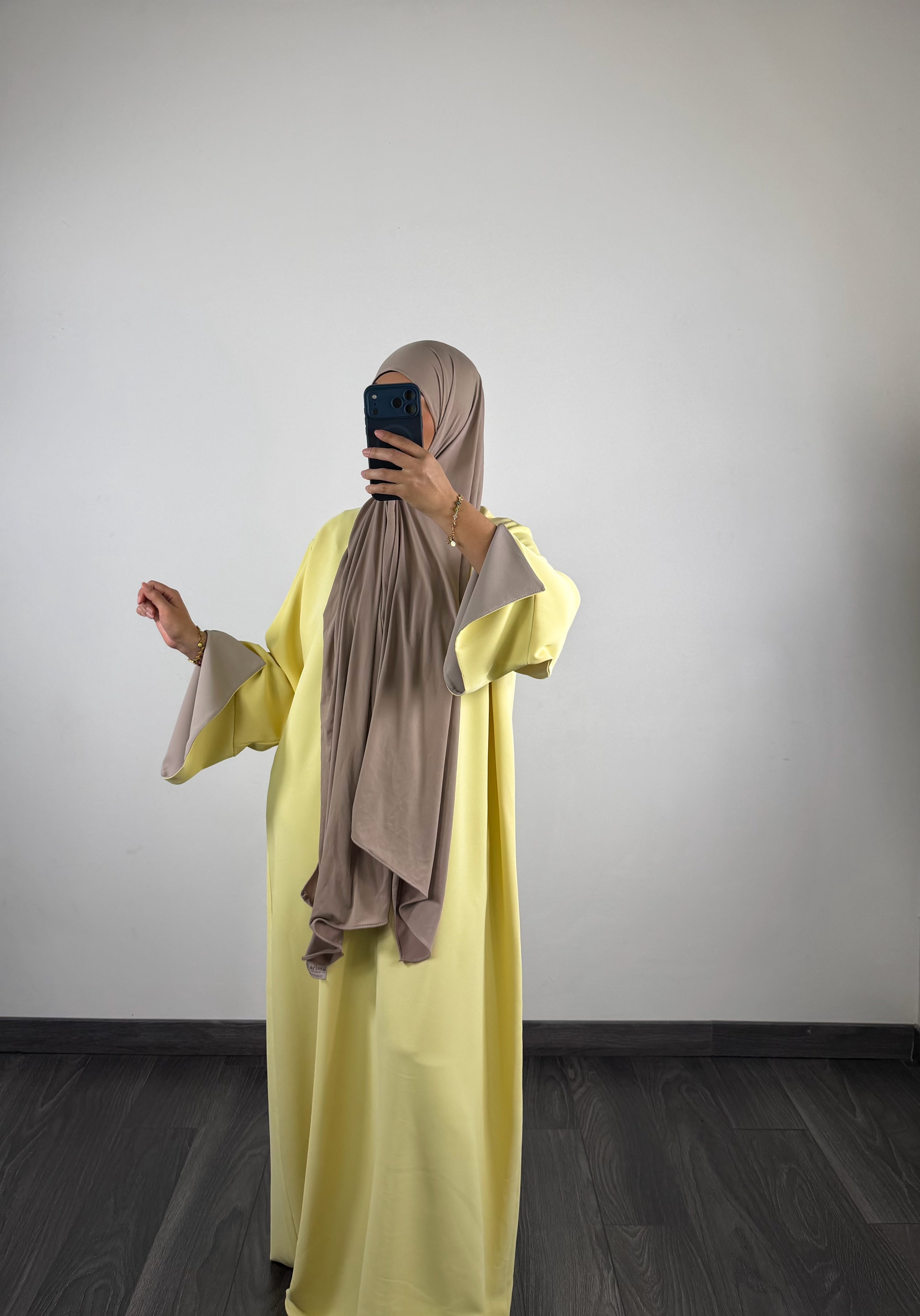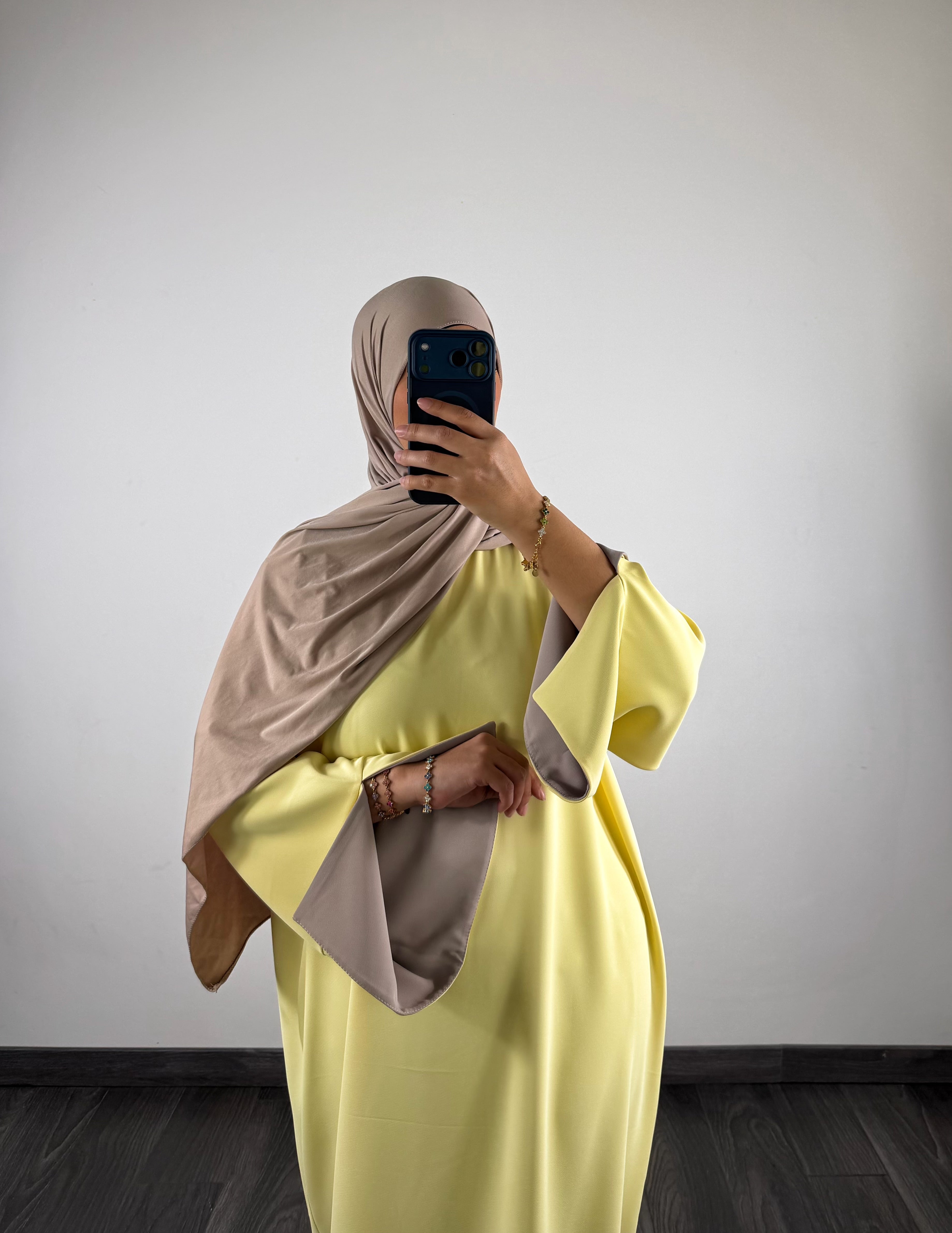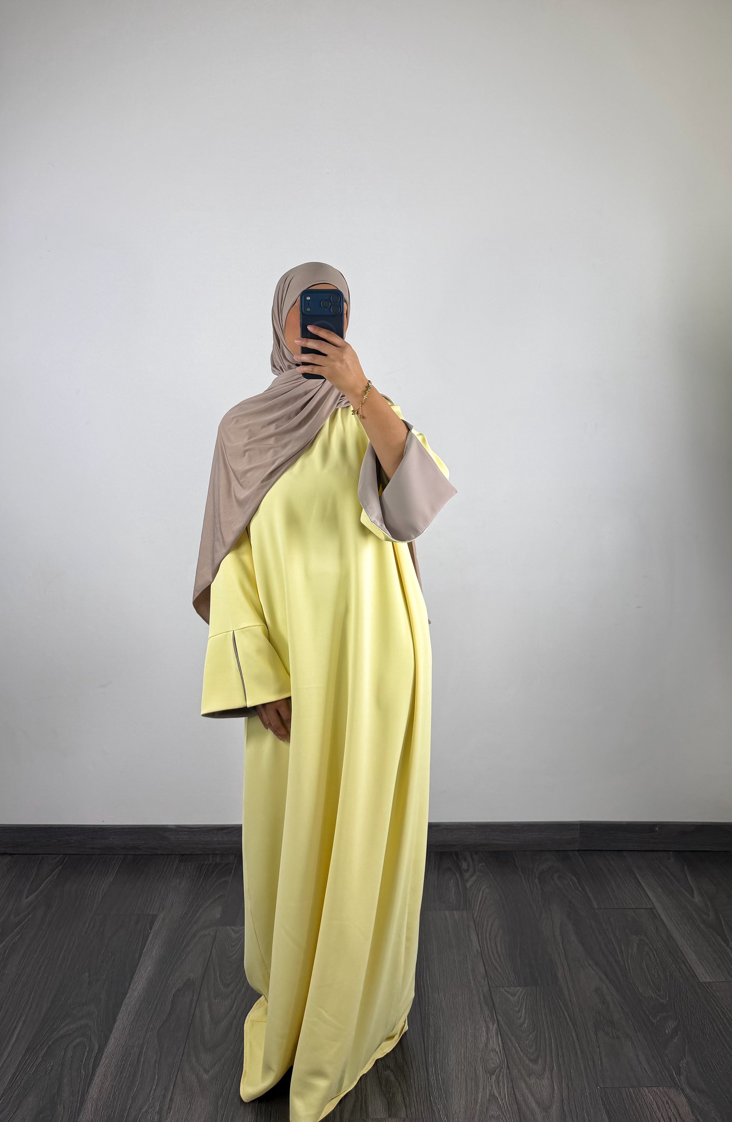 Abaya bi-color, jaune/taupe