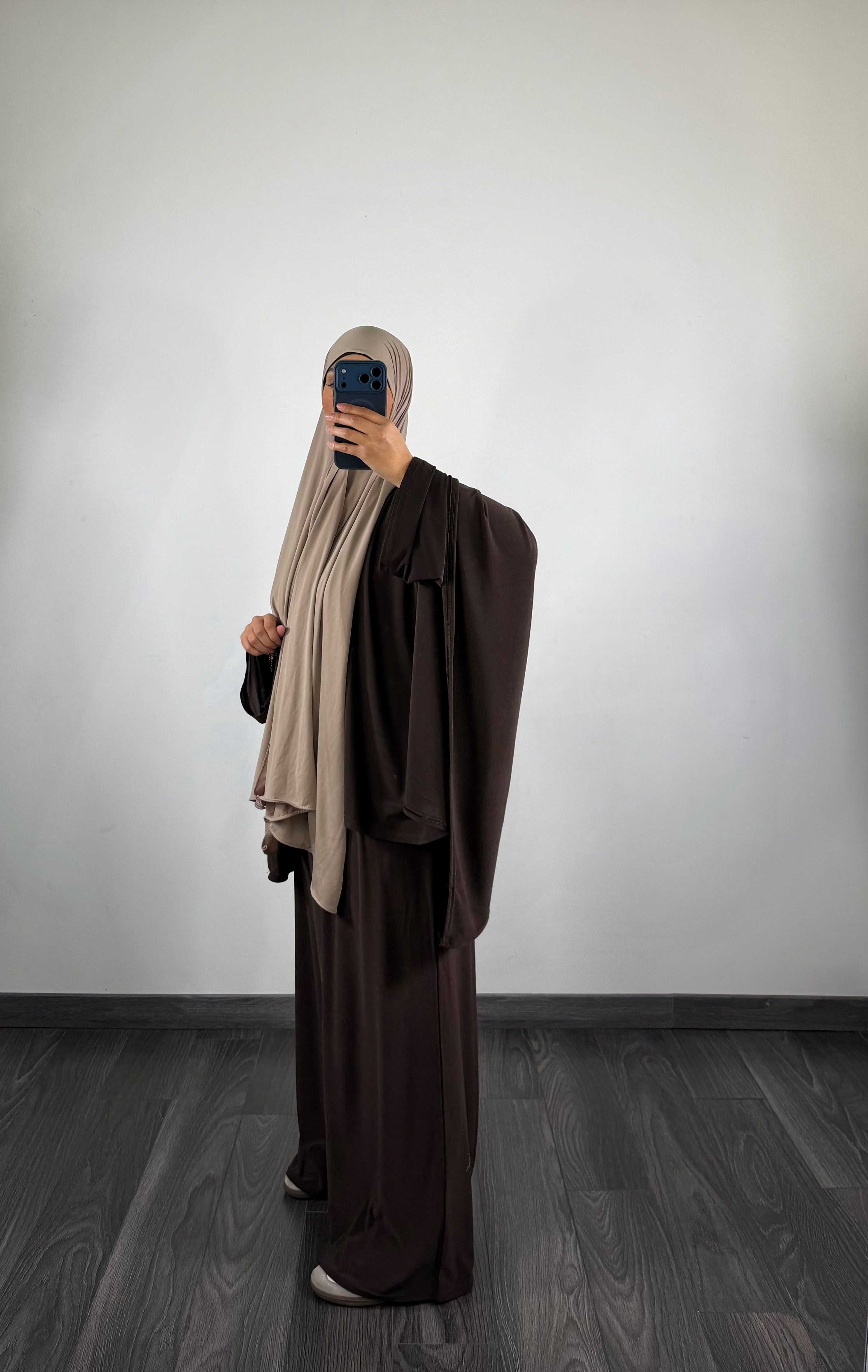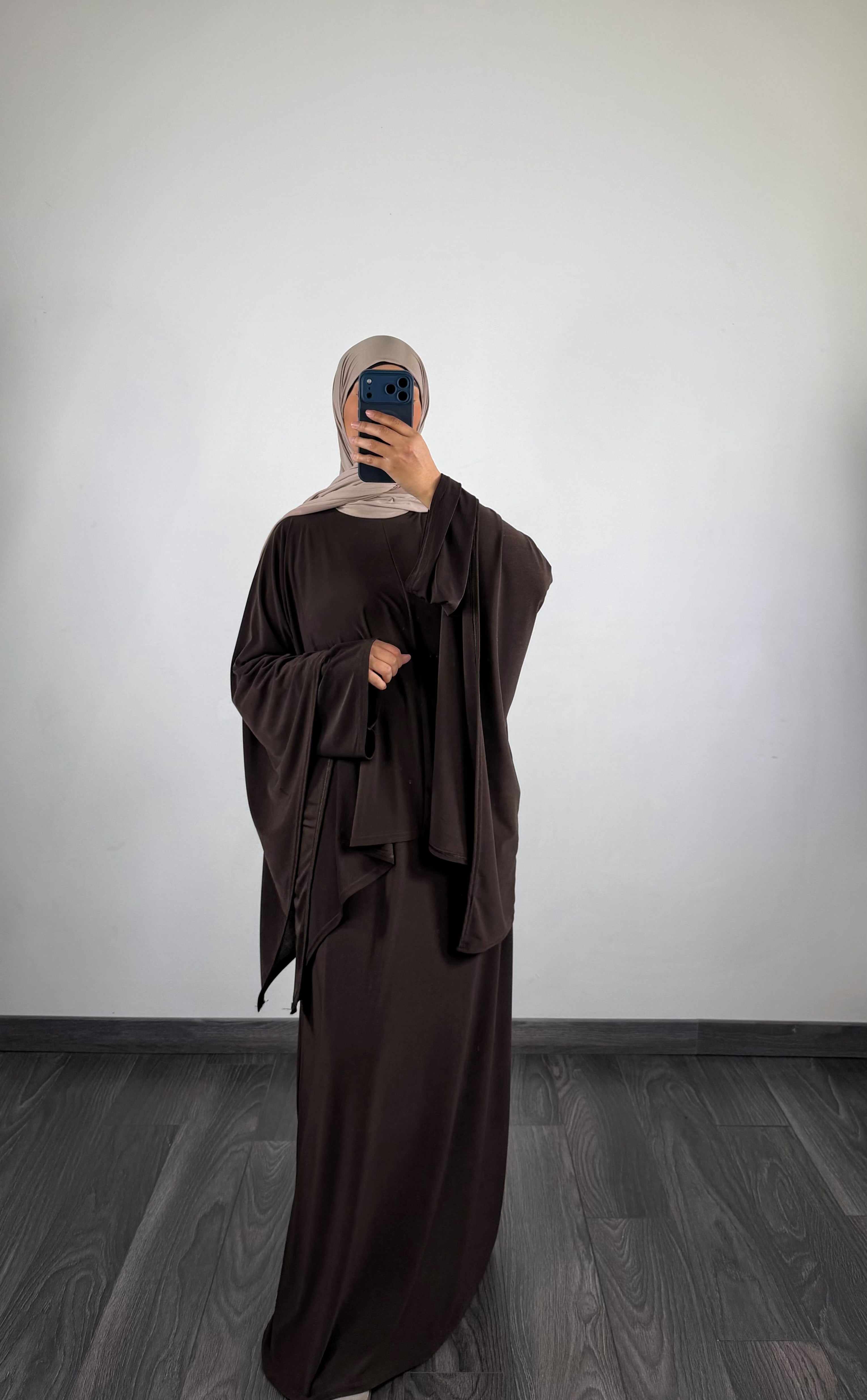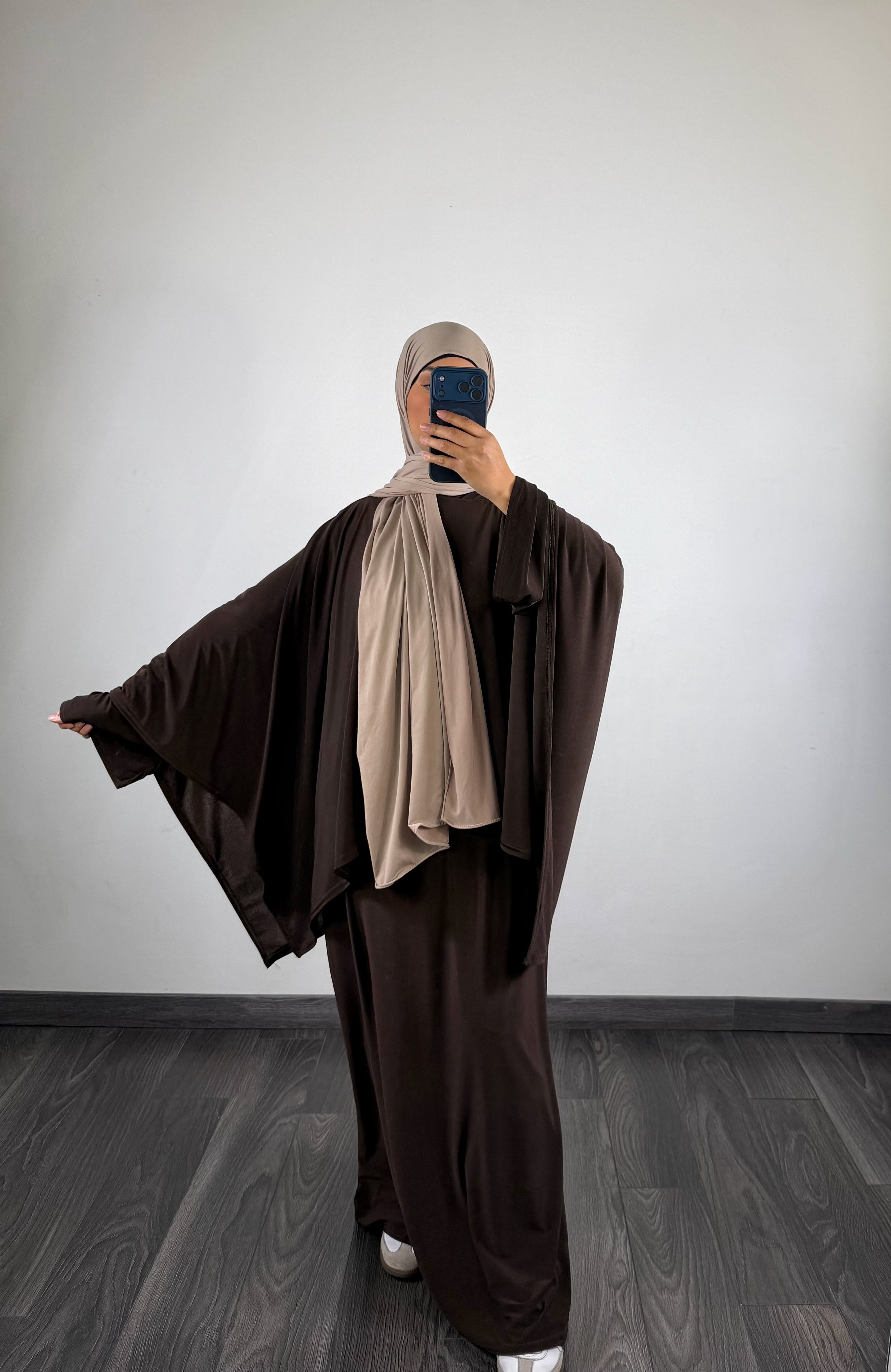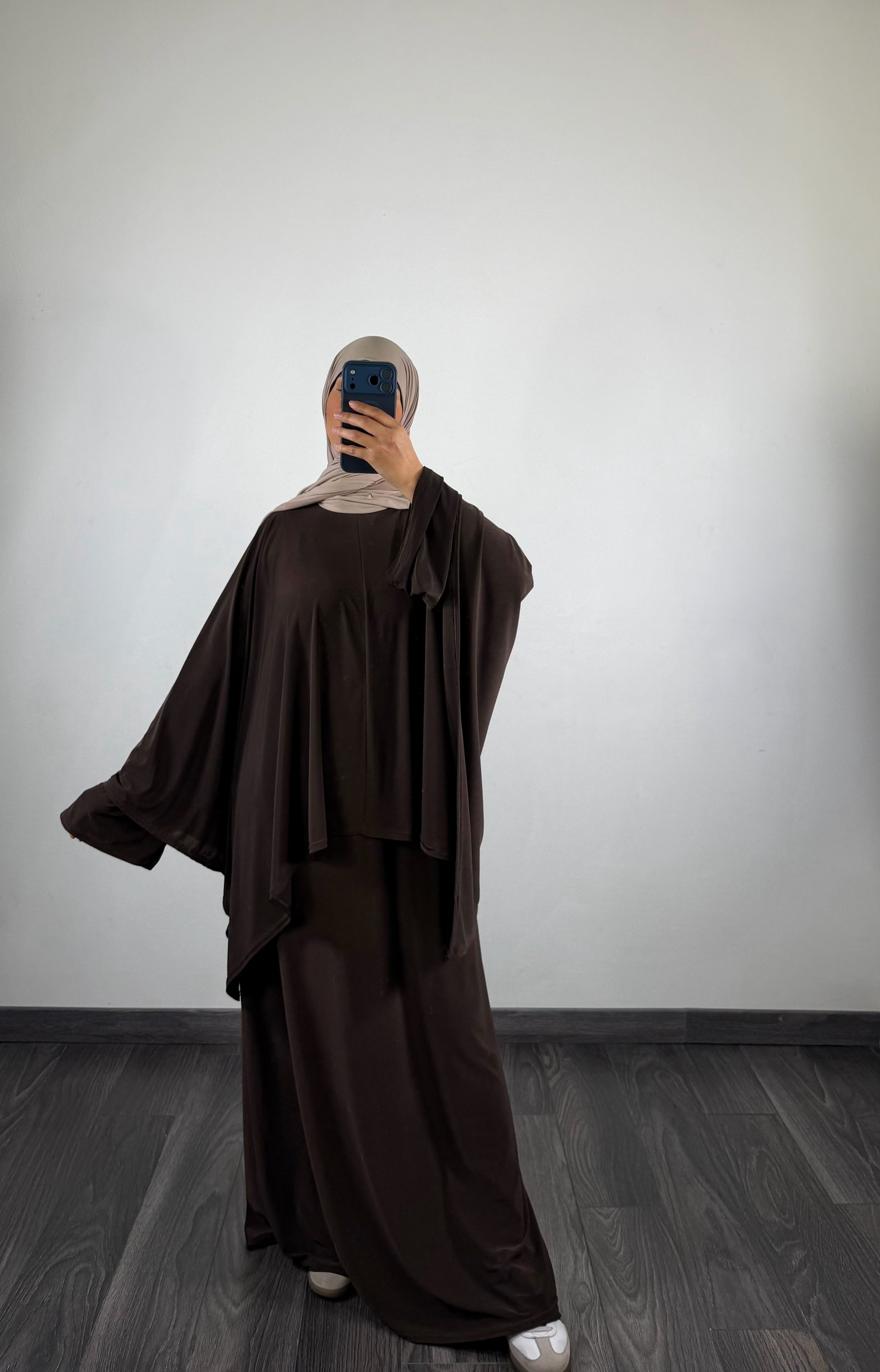 Ensemble abaya + cape jersey, marron